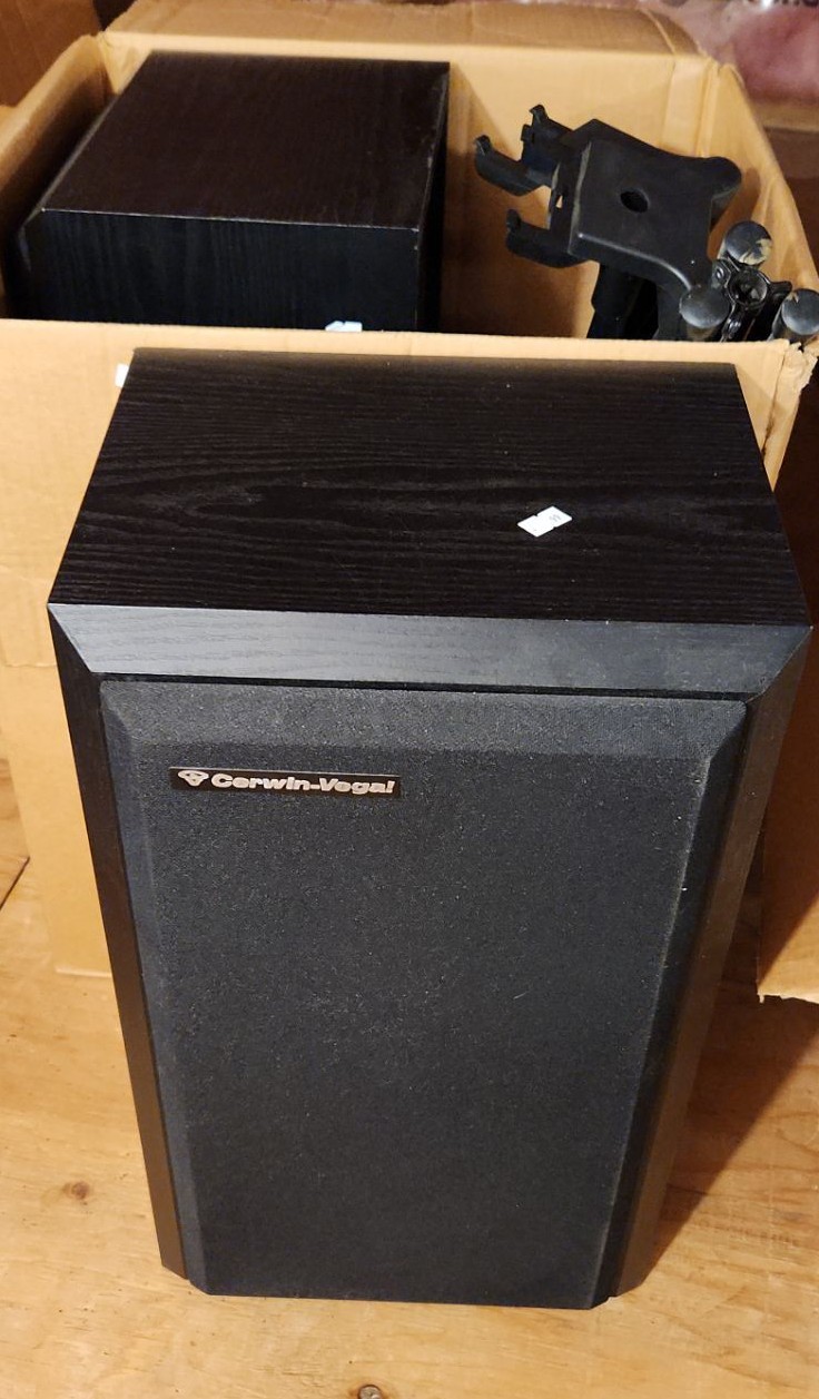 Two Cerwin Vega Model PSL-C4 Speakers 12 W, 11 D, 21 T and One Smaller Speaker, No Wires Included