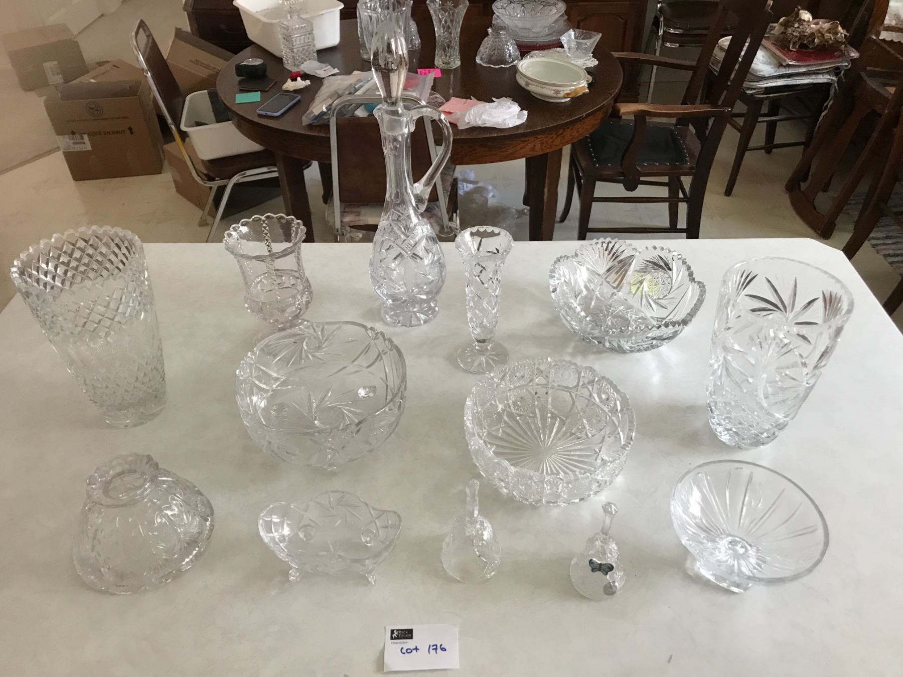 Two Crystal Vase, Bud Vase, Crystal Bowls, Bells, Decanter,