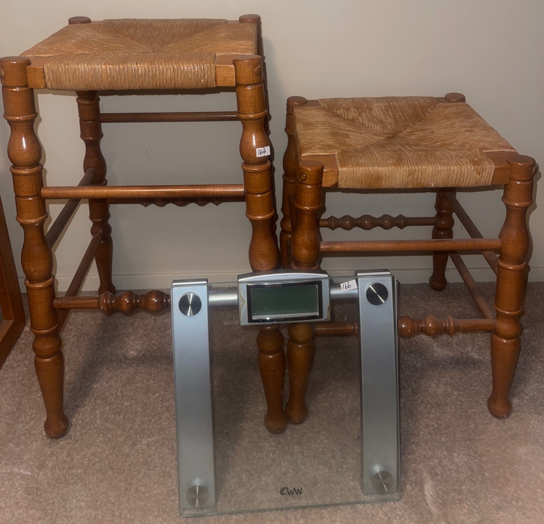 Two Hand Woven Bar Stools W/ Bathroom Scale 30"tallest stool