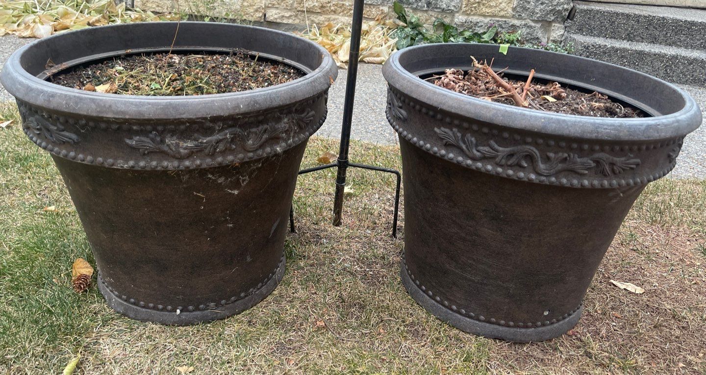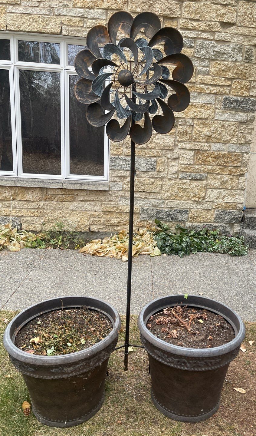 Two Large Decorative Flower Pots w/Large Windmill