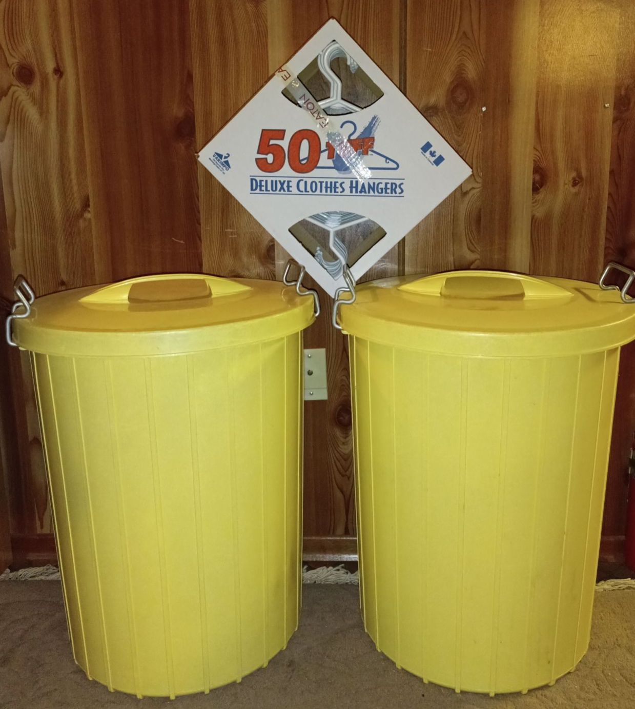 Two Large Laundry Pails & Brand New Box Of Hangers