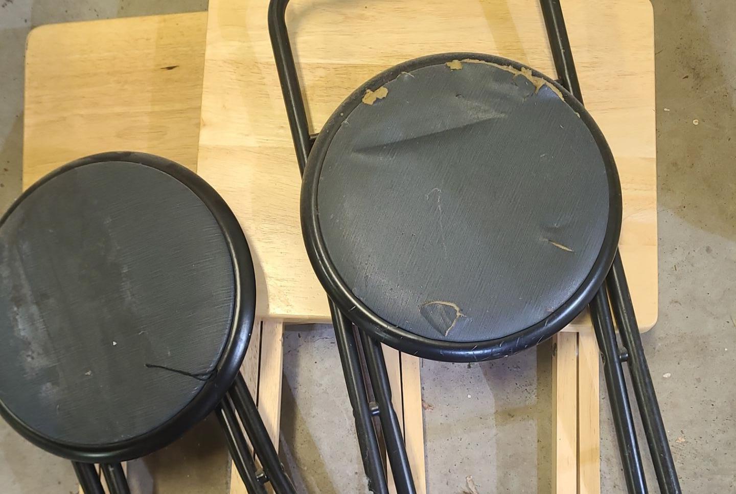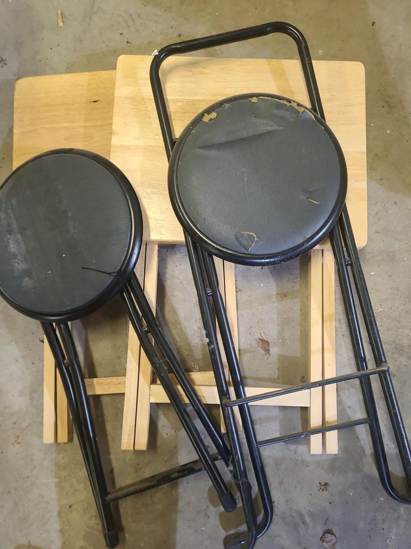 Vinyl on Stools Damaged, Only 2 TV Trays Shown, But 4 Trays and Stand are Included