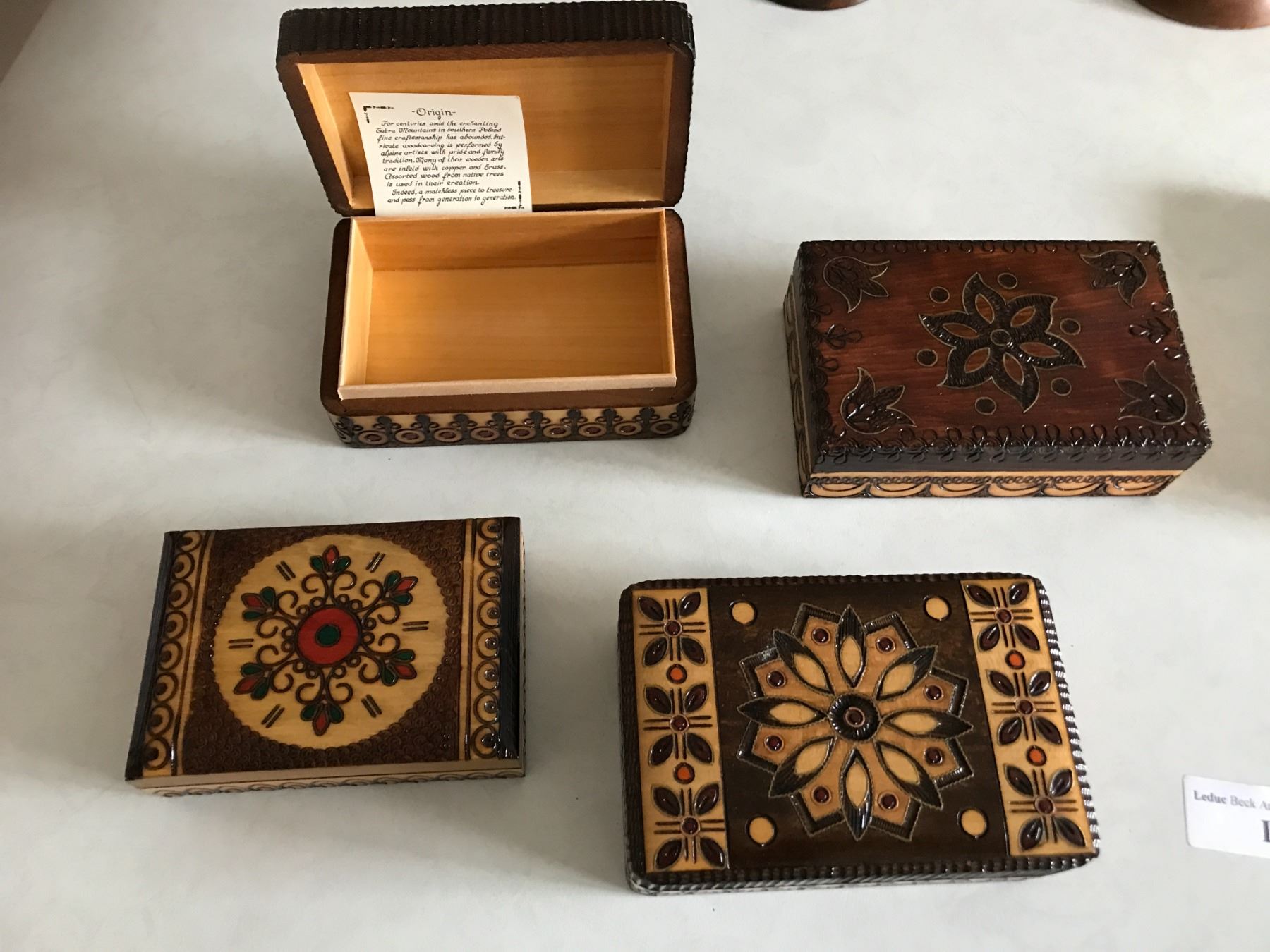 Two Mid Century Modern Wood Lamps, Inspirational Wall Art & 4 Wooden Boxes from Poland