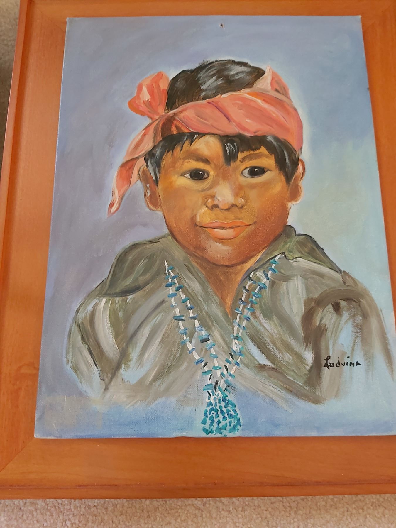 Two Paintings (One Aboriginal Boy And One Elder) By Ludvina - 16W x 19 1/4H (Boy)