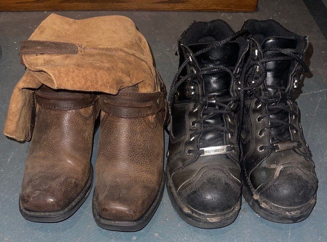 Two Pairs Of Men's Harley Davidson Boots Size 7-8