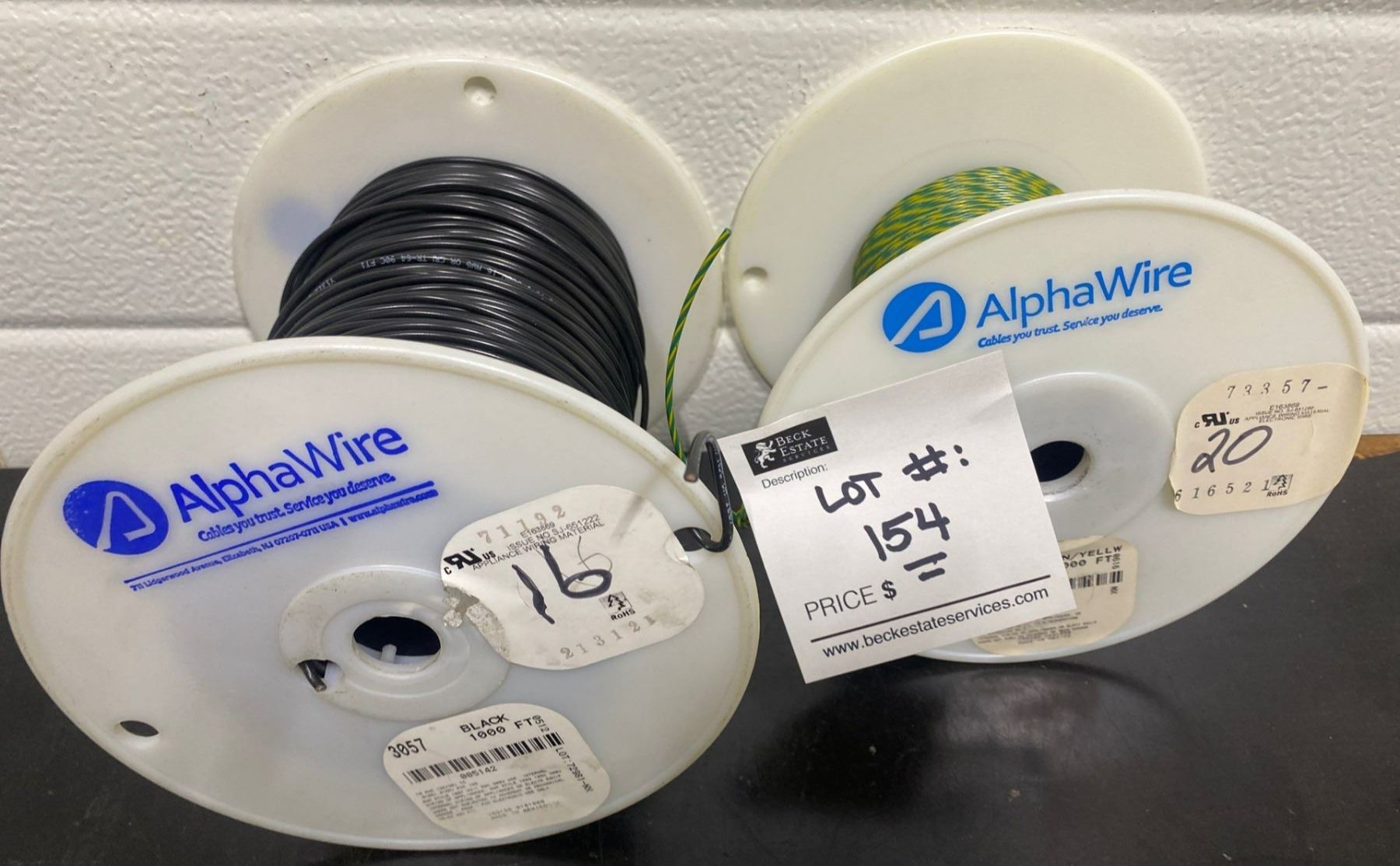 Two Partial Alpha Wire Electrical Spools Green & Black