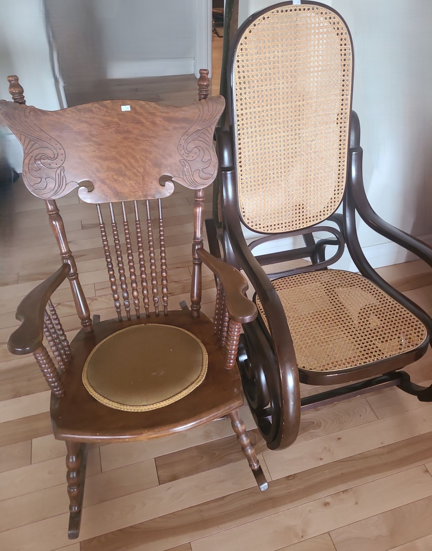 Two Rocking Chairs- 21.5 W, 30 D, 38 T and Rattan Detail 21.5 W, 38.5 D, 43 T