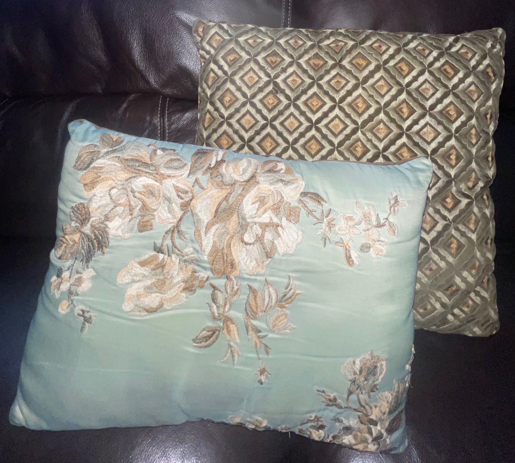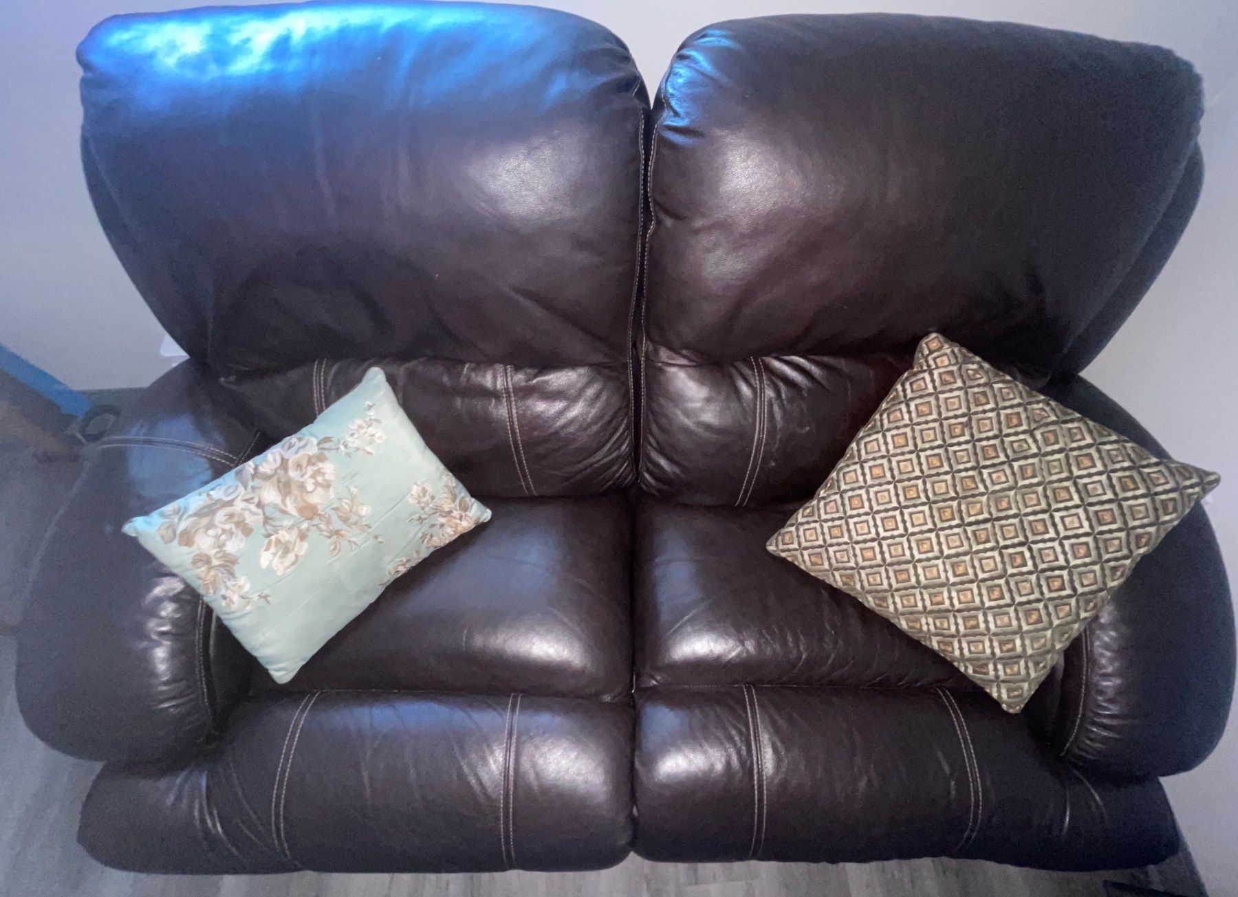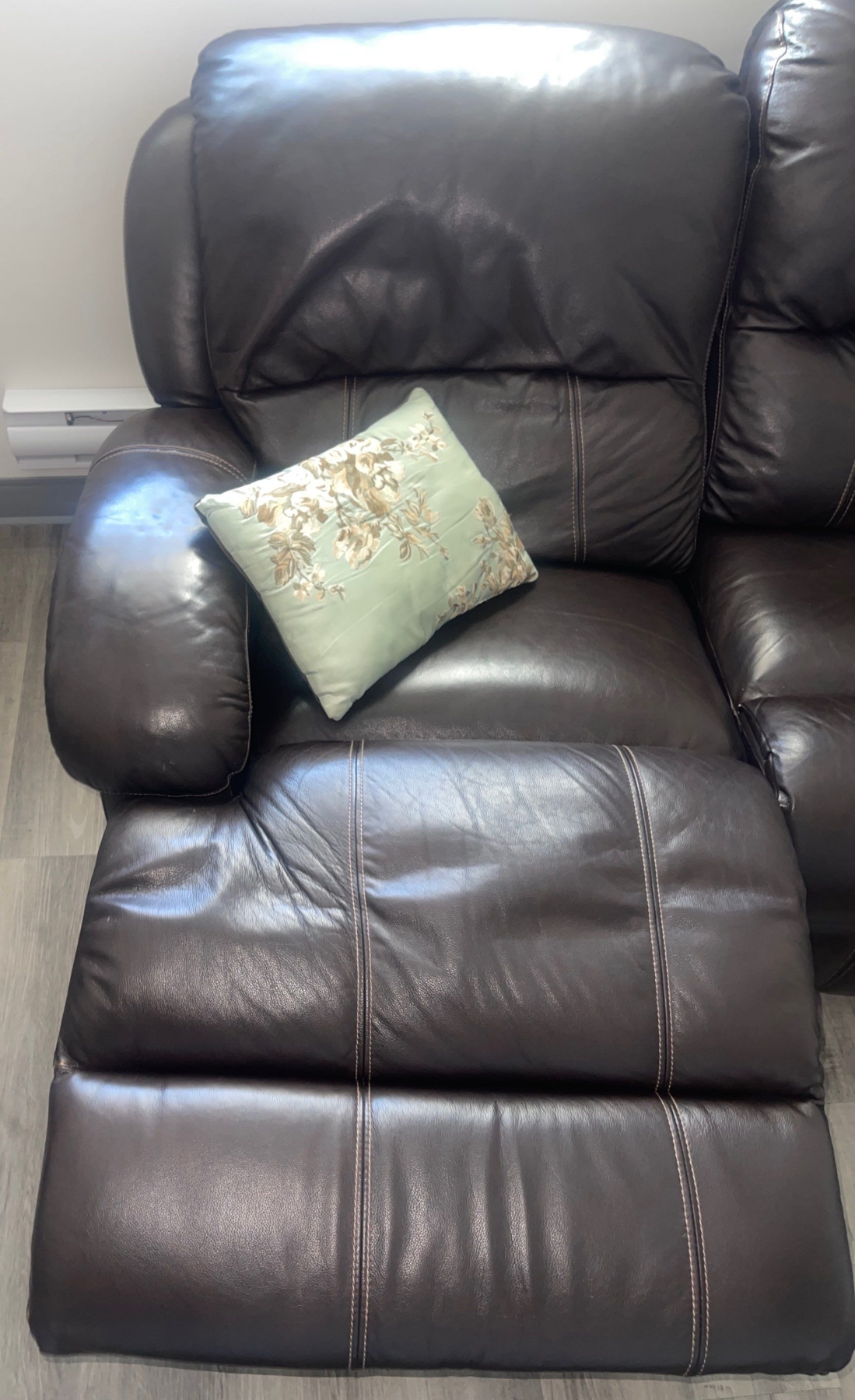 Two Seater Leon's Brown Leather Reclining Loveseat w/Cushions 67"w x 44"d x 37"tall