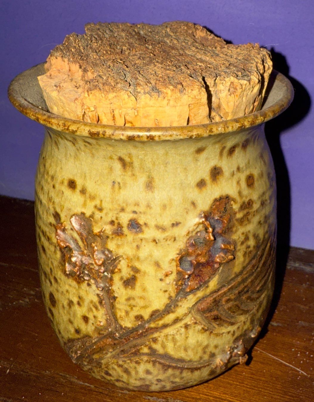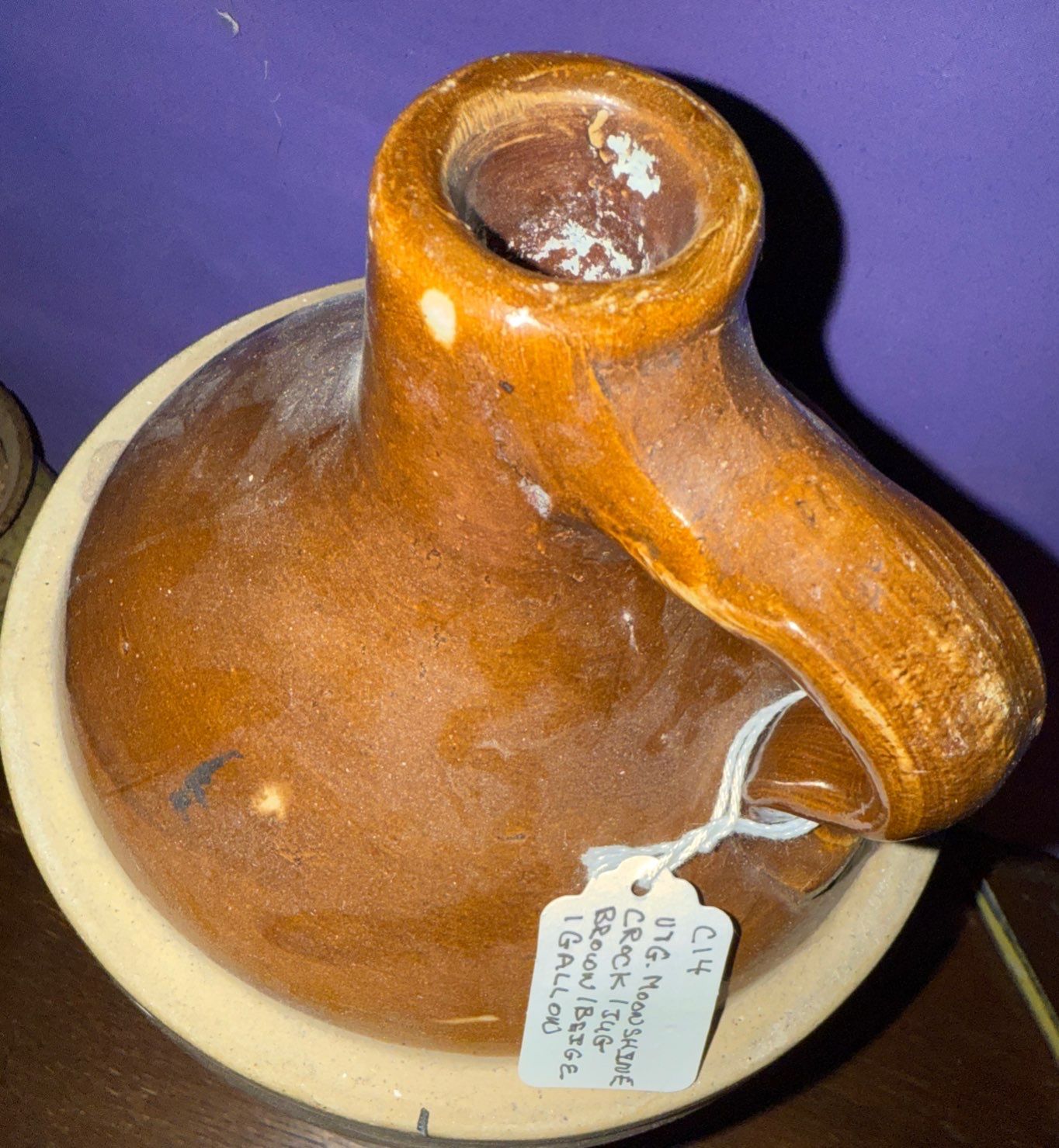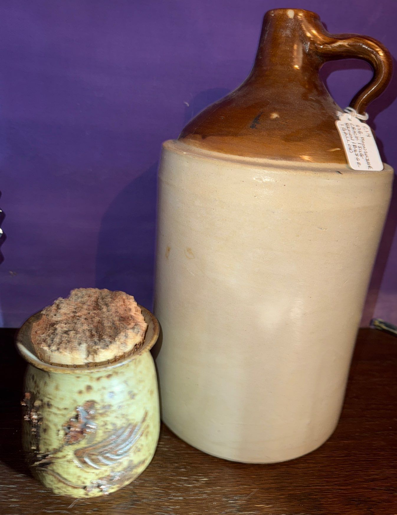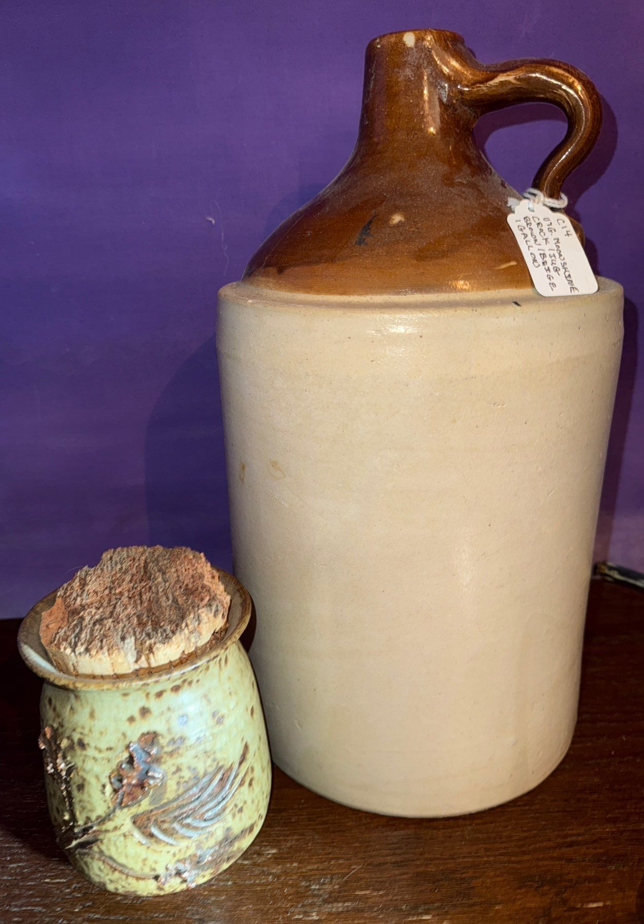 Two-Toned Vintage Stoneware Crock/Whiskey Jug w/Small Pottery Piece