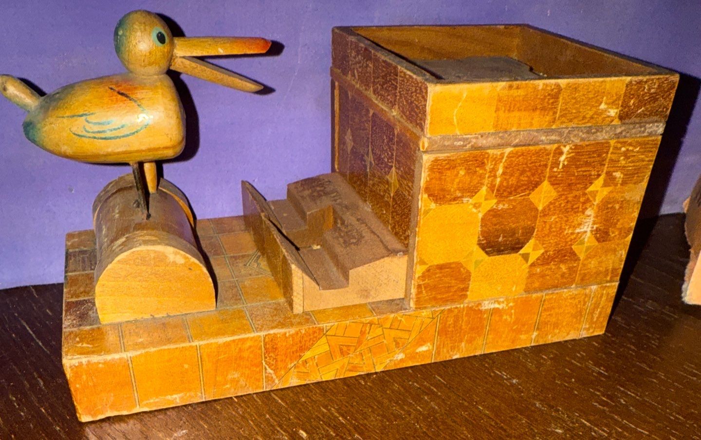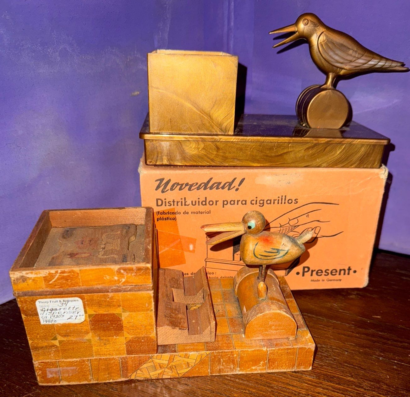 Two Vintage Cigarette Dispensers- One Wood, One Plastic Inlay (1940's)