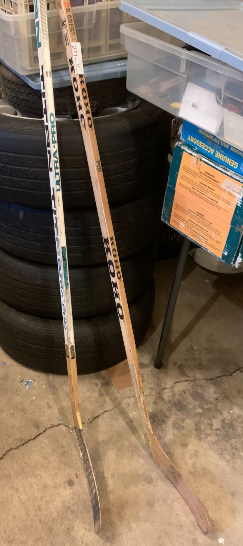 Two Vintage Wooden Hockey Sticks Titan SR Pro and a Koho Dr. Randy Gregg Stick