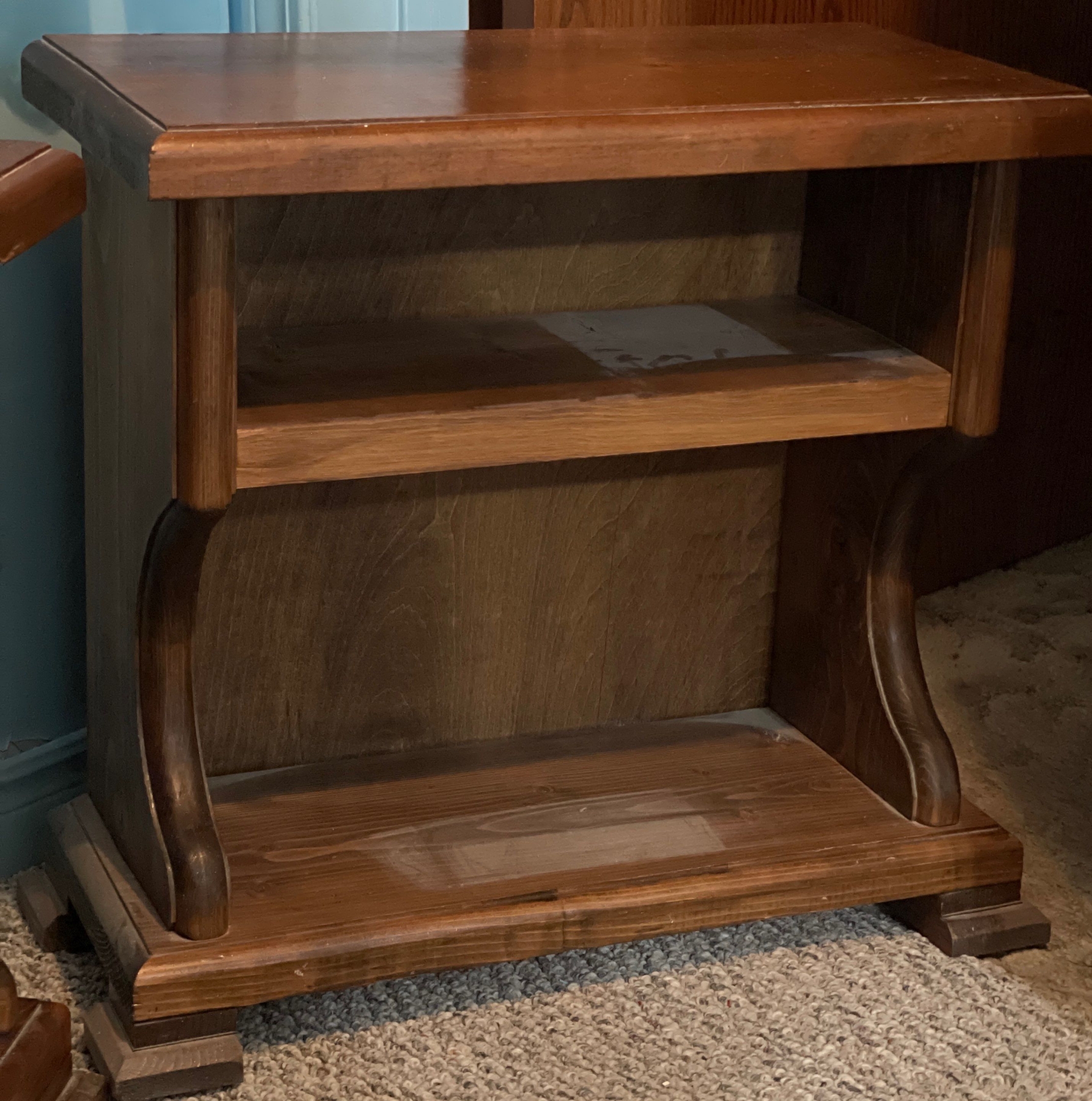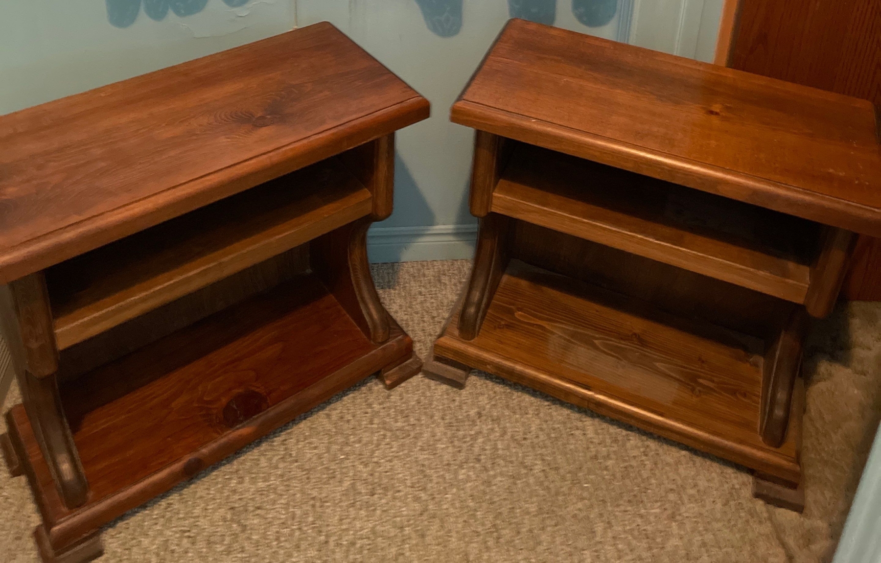 Two Well Loved Solid Wood Identical Side Tables 19"w x 15"d x 26" tall