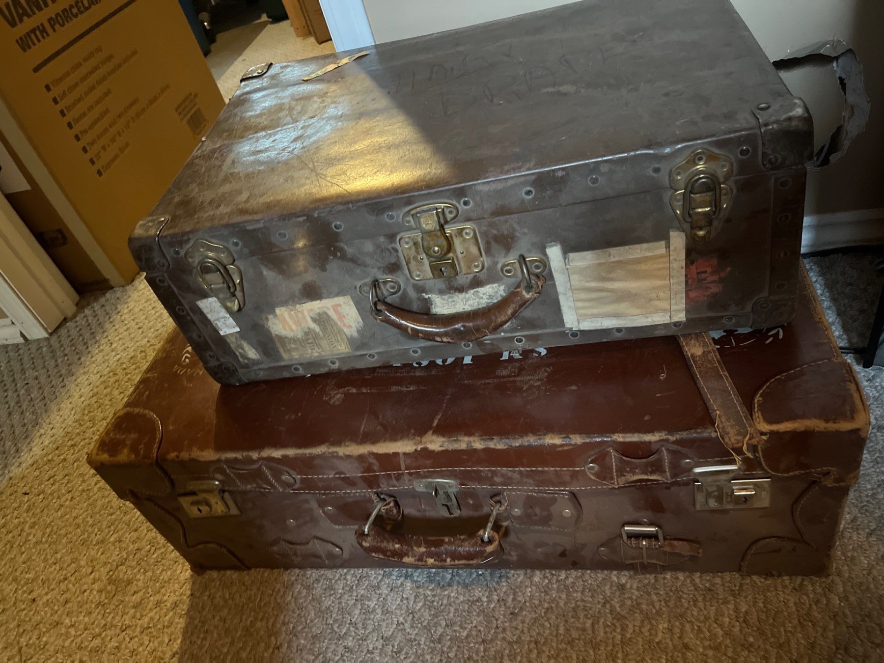 Two vintage suitcases locked there may be treasures in them