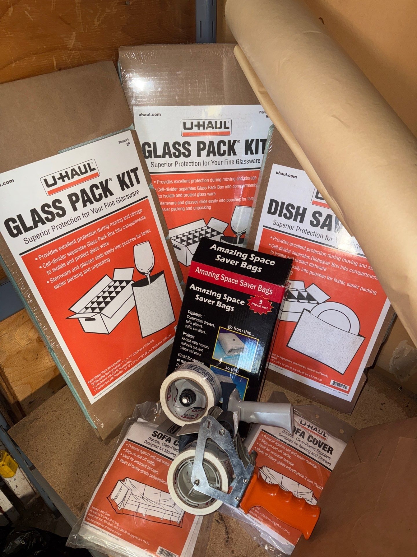Uhaul's Glass Packing Kit x 3 w/ Roll of Paper To Wrap, Two Tape Guns & More
