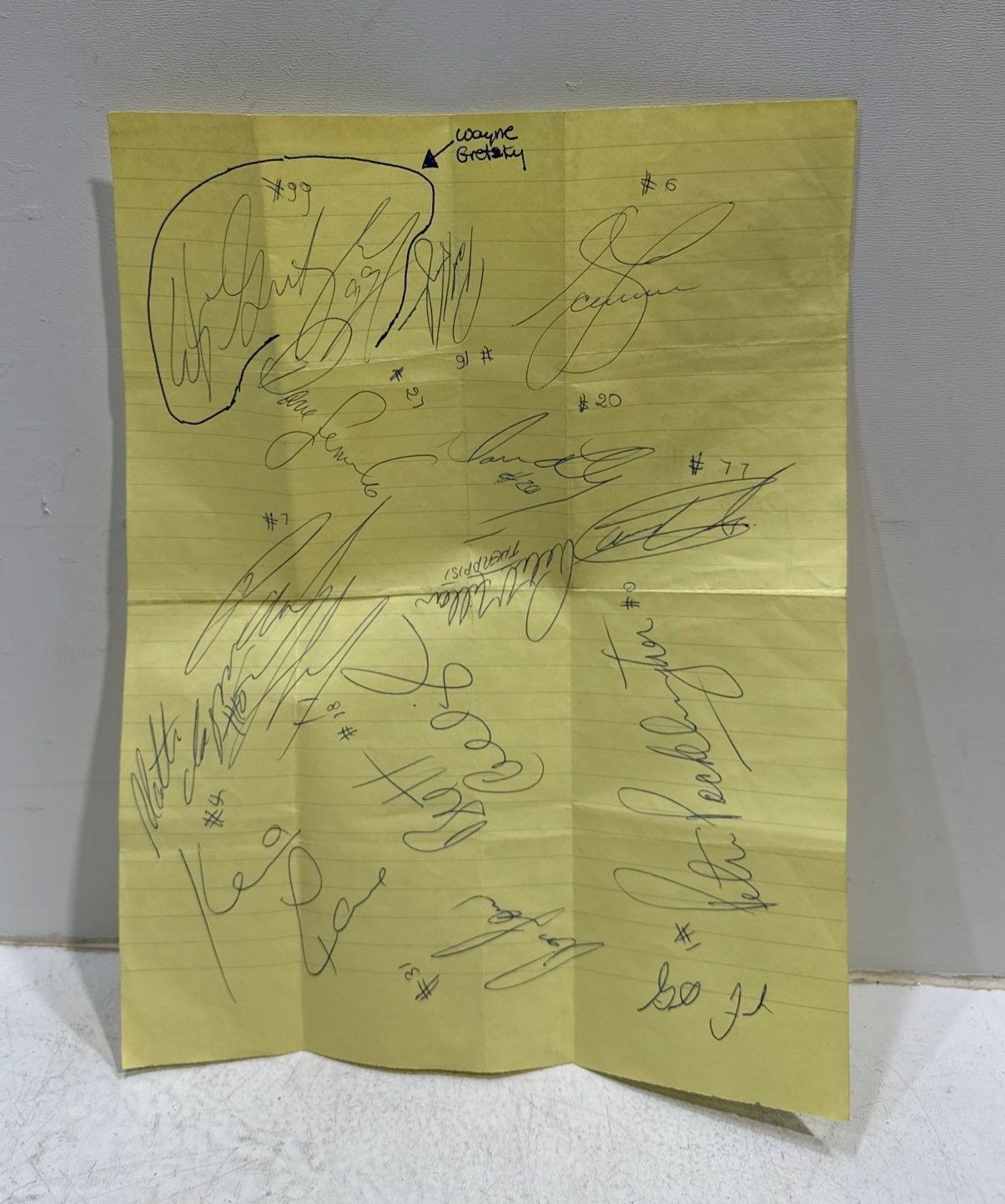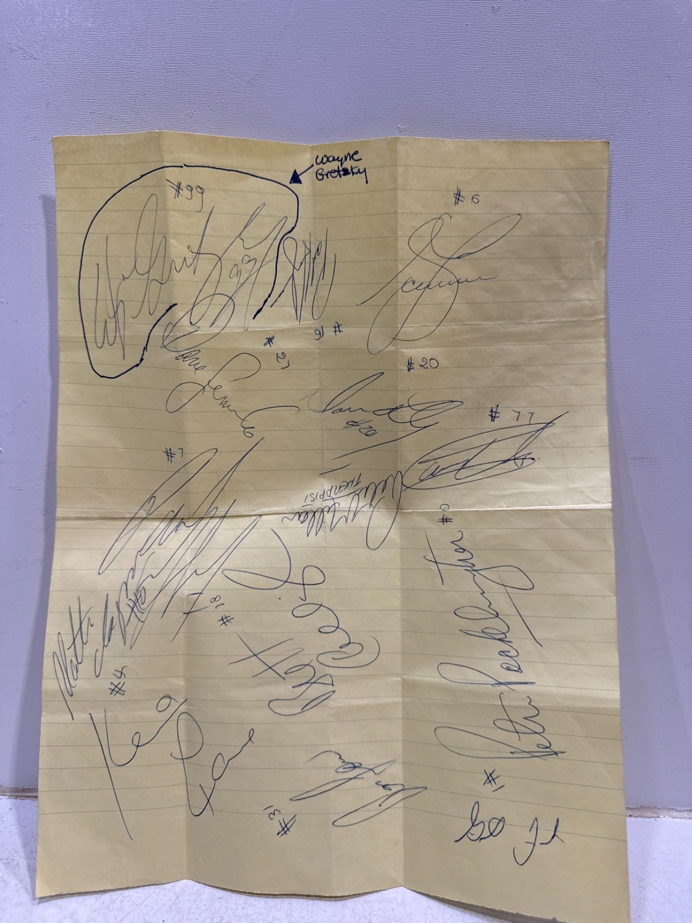 Unauthenticated Page of Signatures from the Edmonton Oilers, Rookie Year