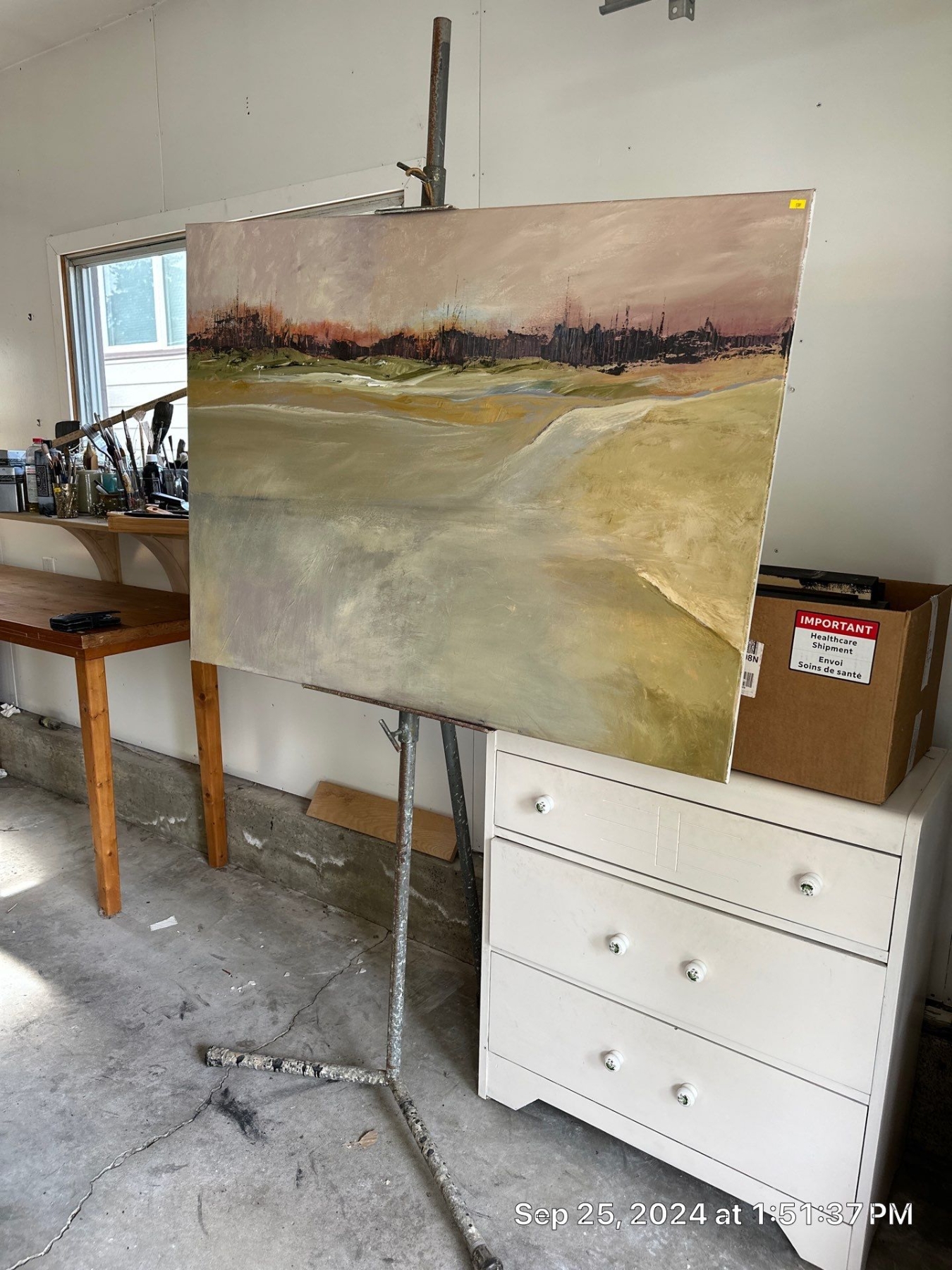 Unfinished Oil on Canvas Painting (48W, 36T) Plus Easel