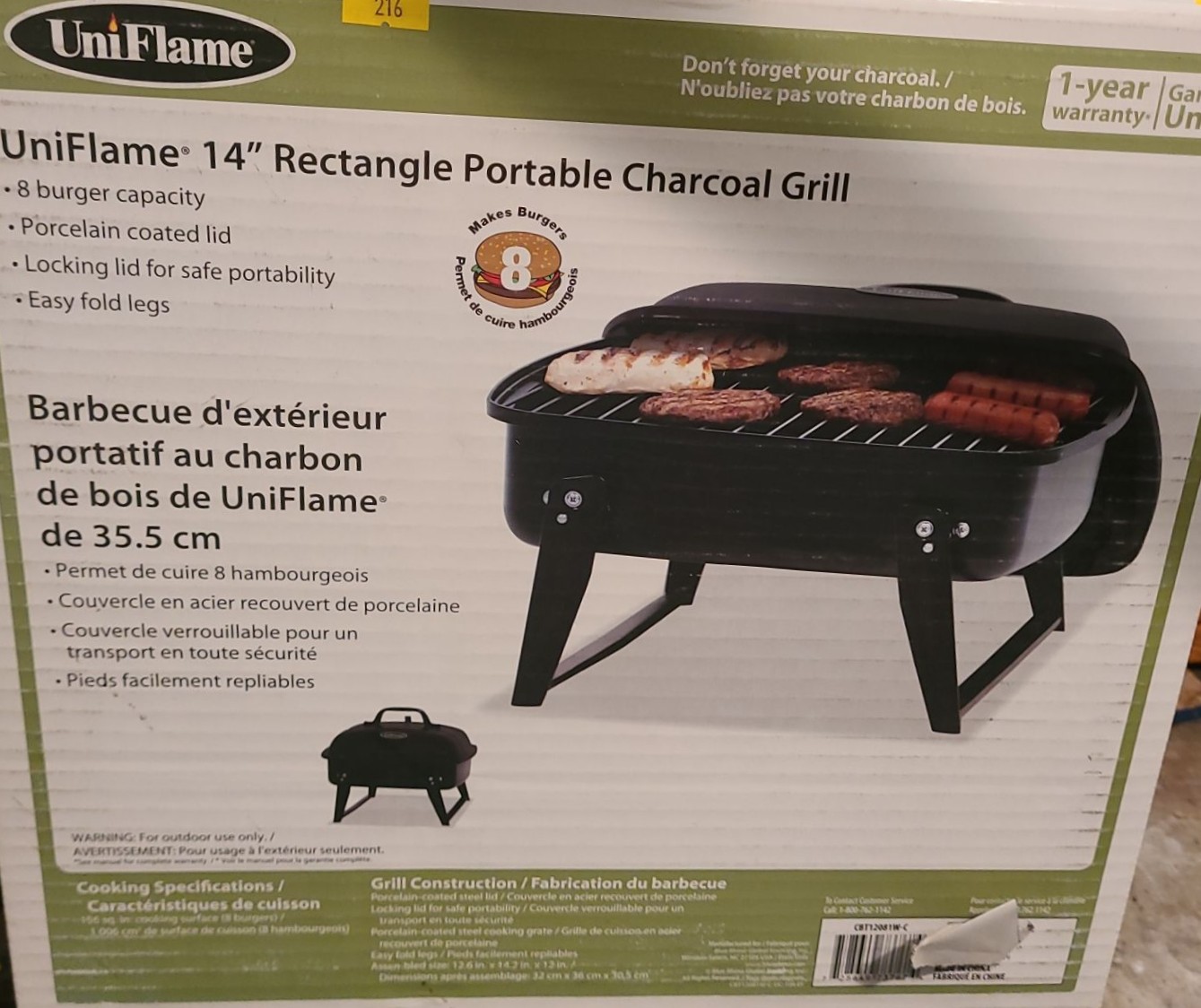 Uniflame Model CBT12081W-C 14" Portable Charcoal Grill