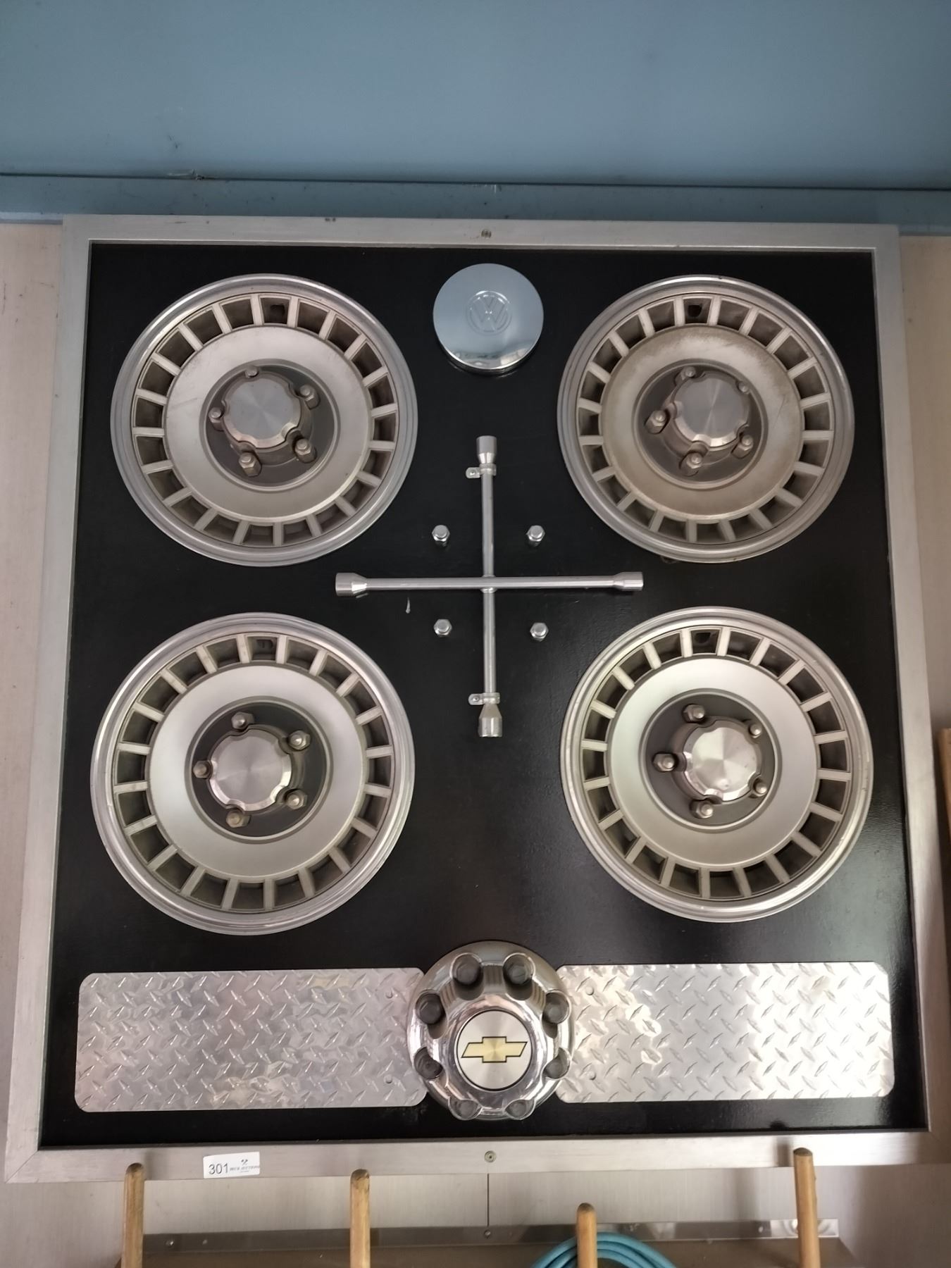Unique Hubcap Display 46 1/2 Wide x 49 1/2 High