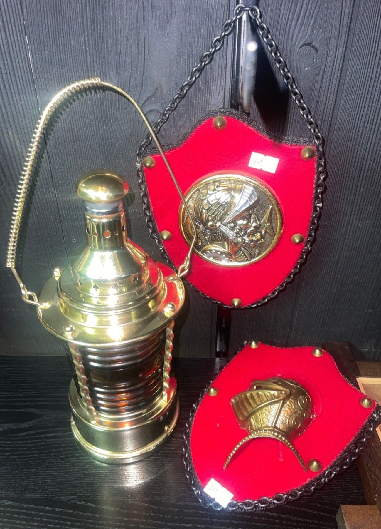 Unique Nautical Decanter w/ Velvet & Brass Knight Code of Arms Emblem