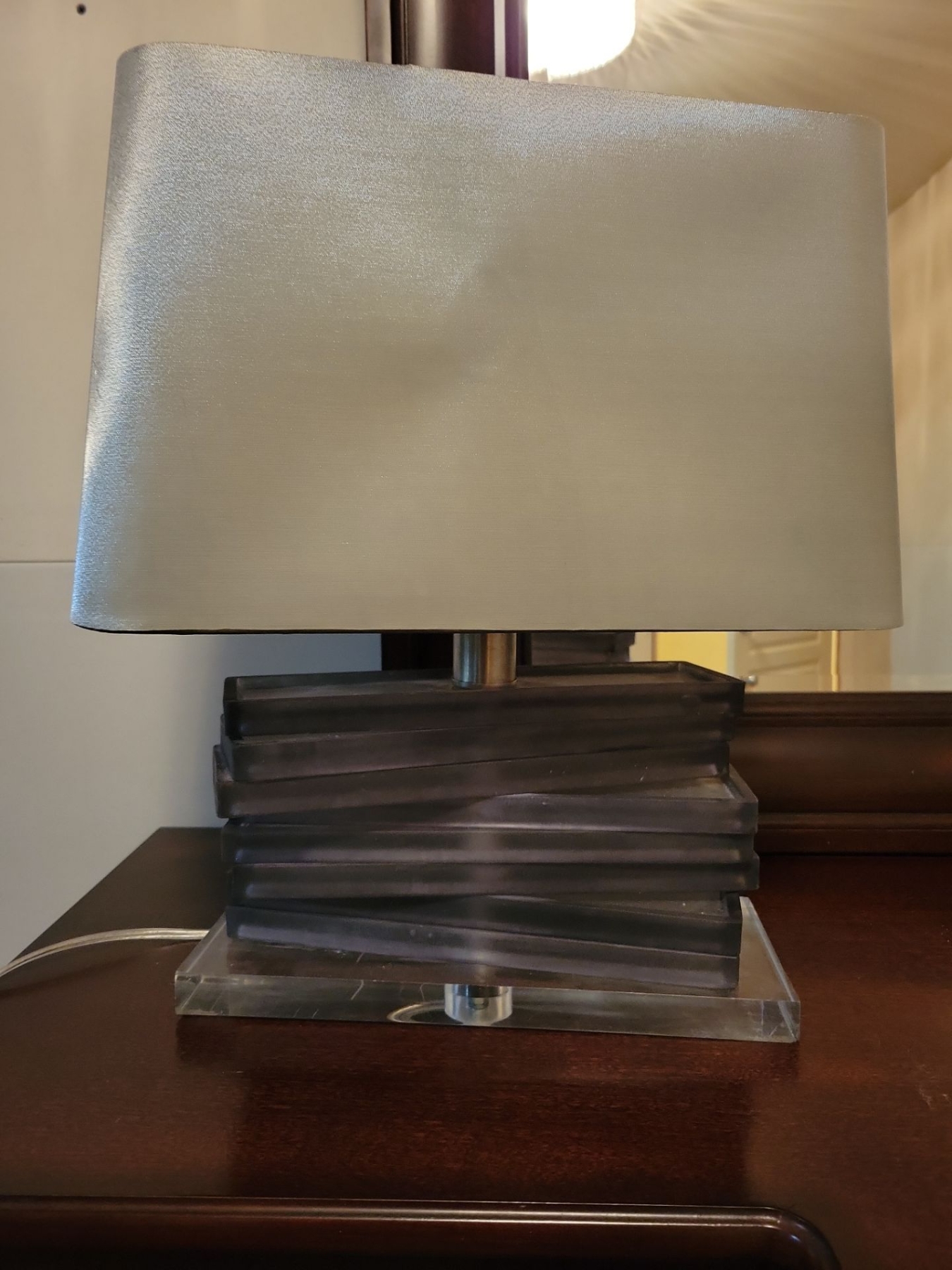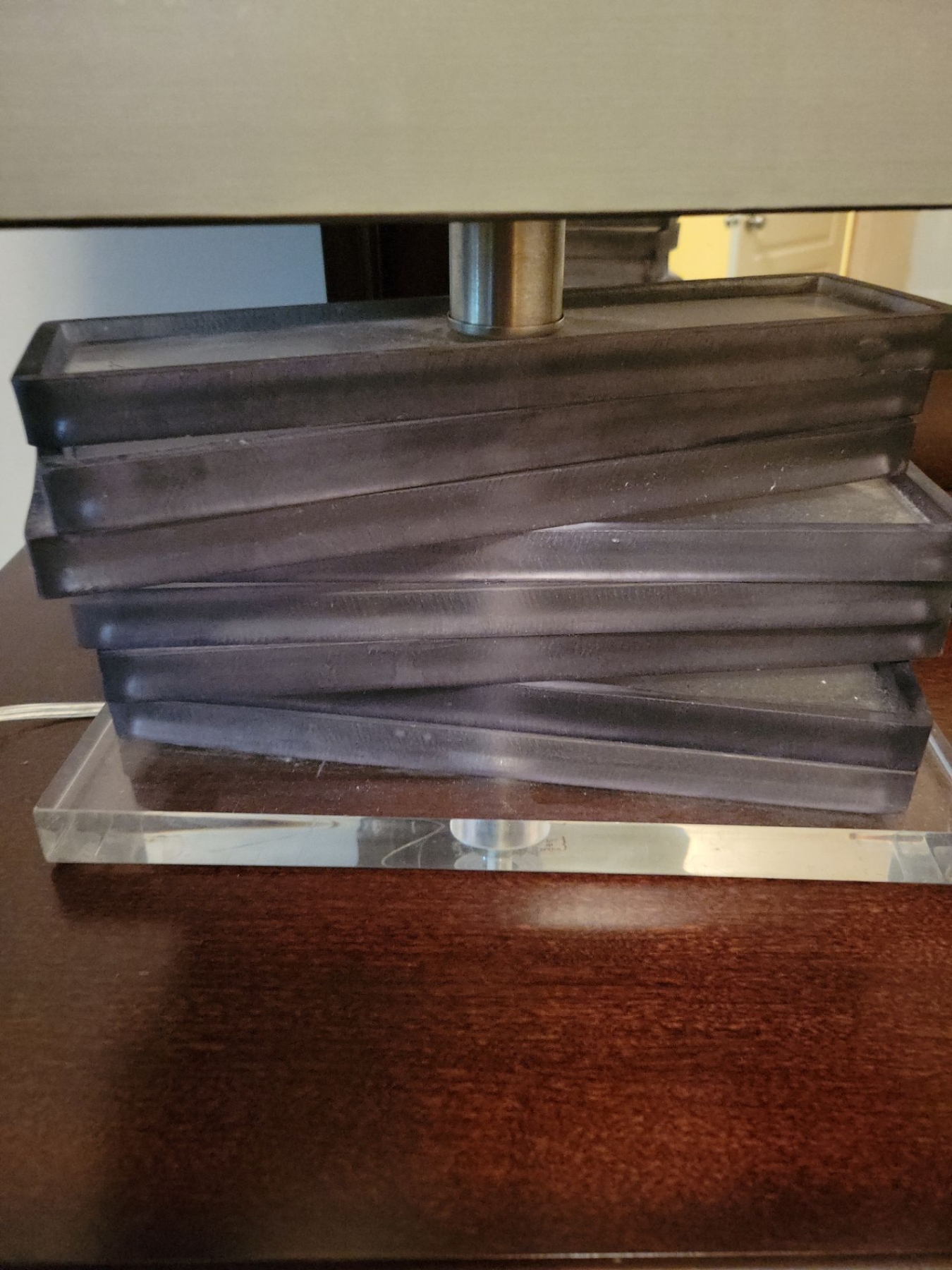 Unique One of A Kind Stacked Table Lamp w/ Rectangular Shade 17T Extremely Heavy Well Made