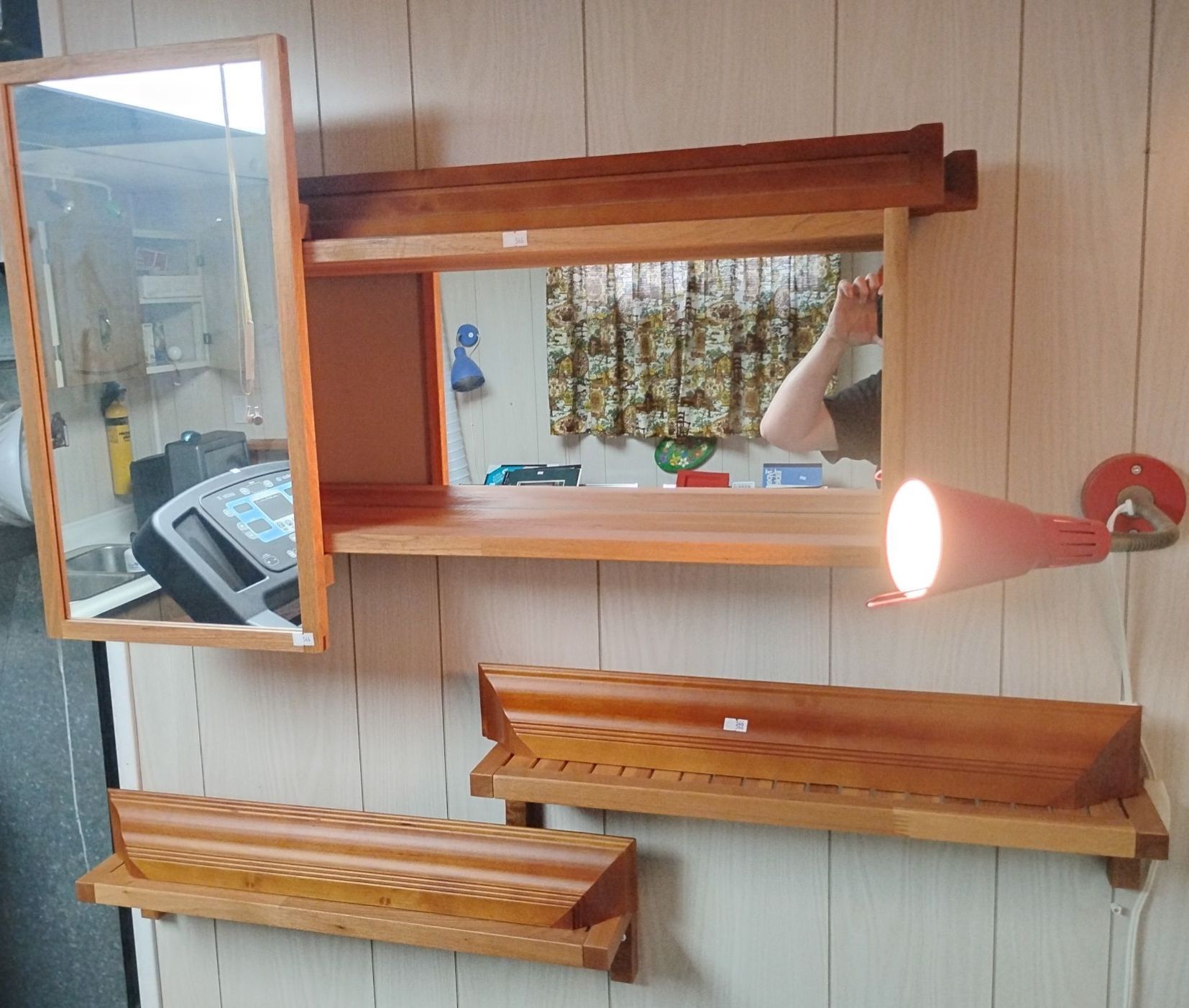 Unique Shelf w/ Sliding Mirror & 6 Wood Floating Shelves