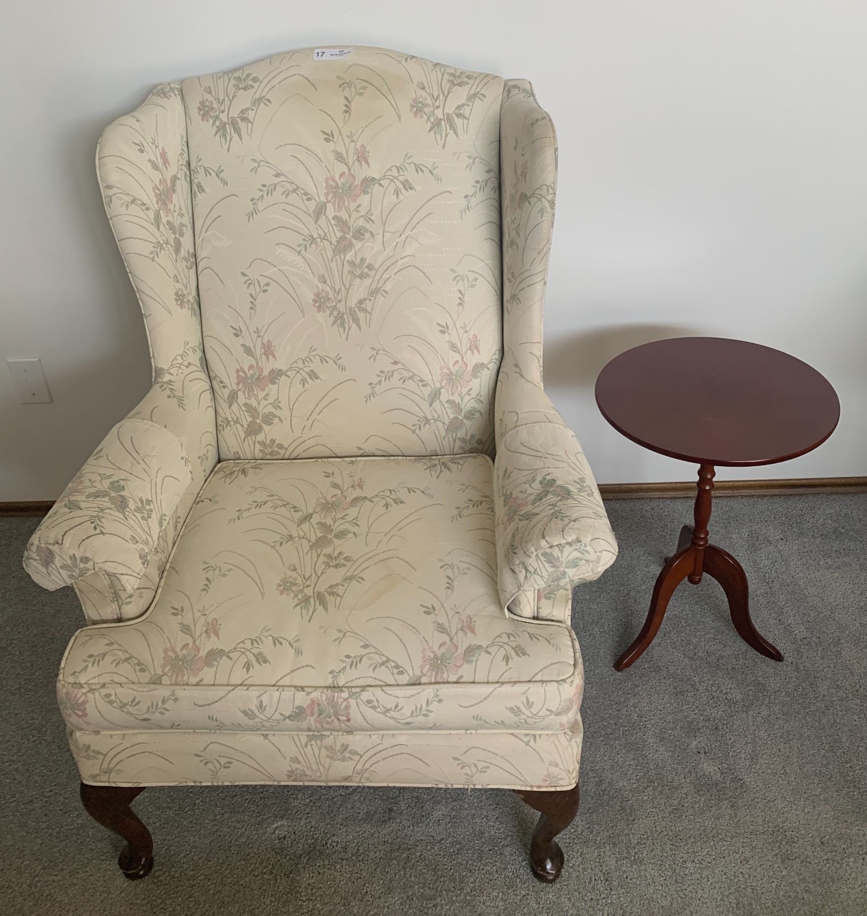 Upholstered Chair w/ Floral Pattern with Round Wooden Side Table