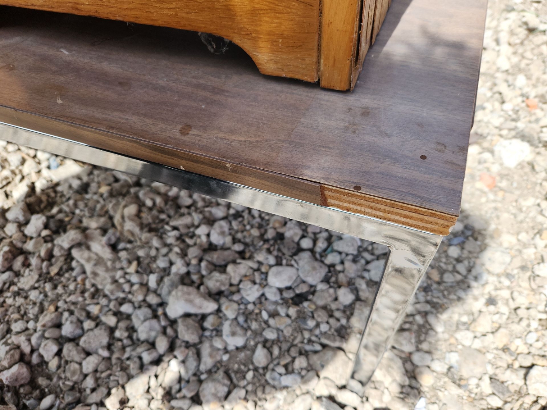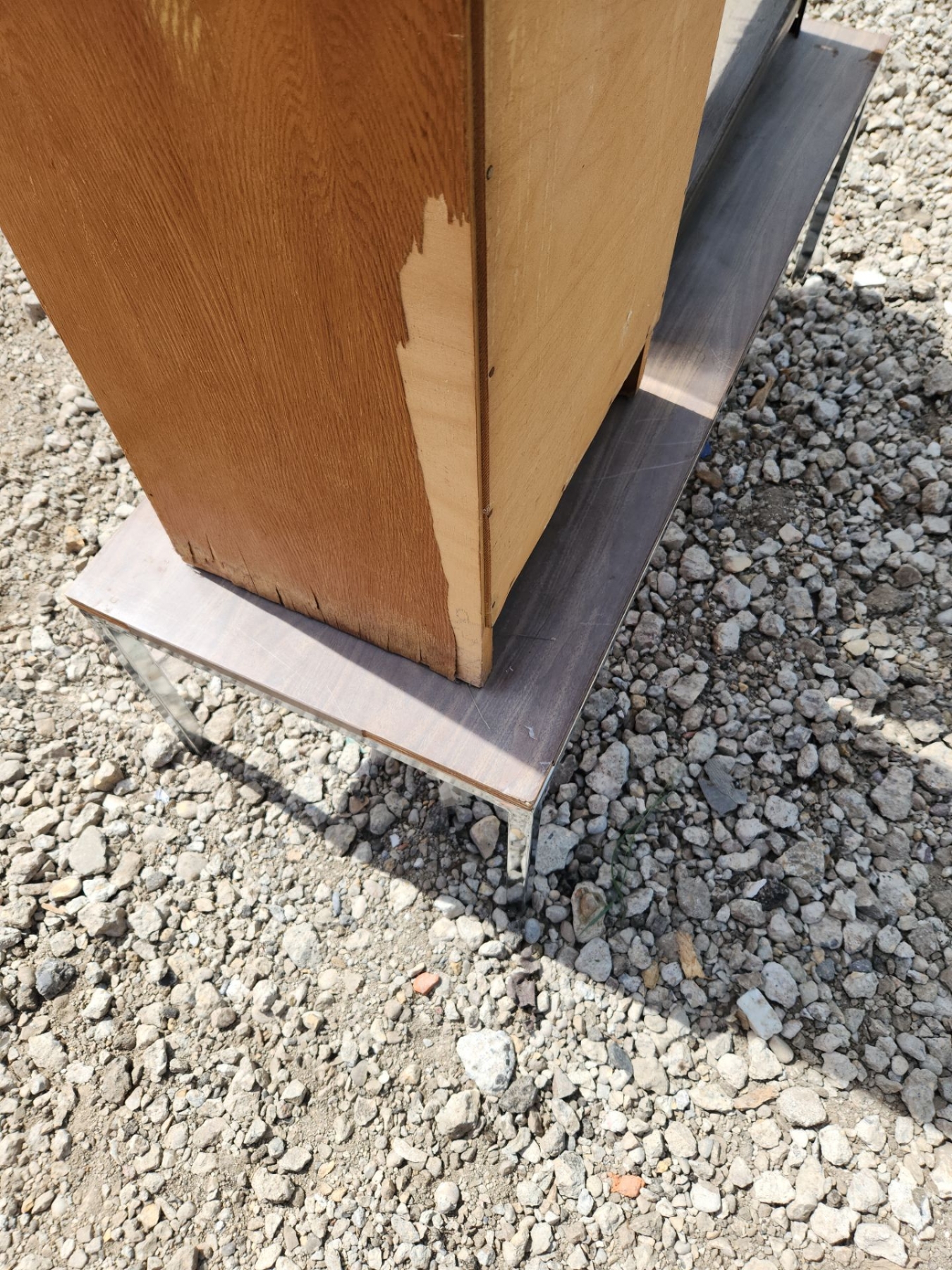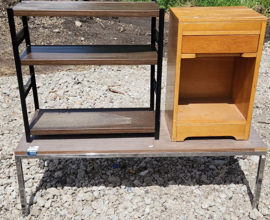 Utility: Coffee Table 52 W, 20 D, 16 T, Metal Shelving 27 W, 12 D, 27 T, Nightstand 16 W, 14 D, 26 T