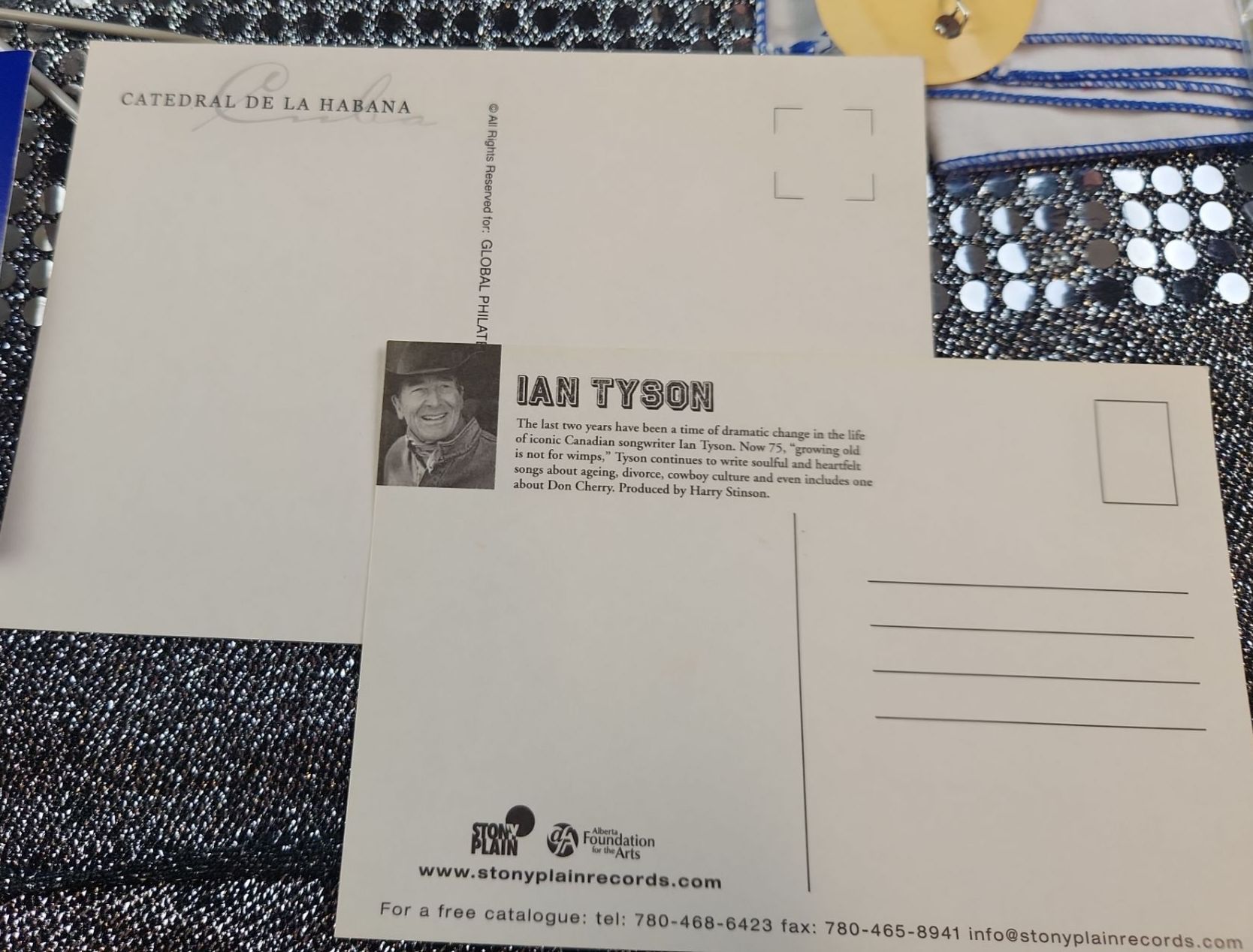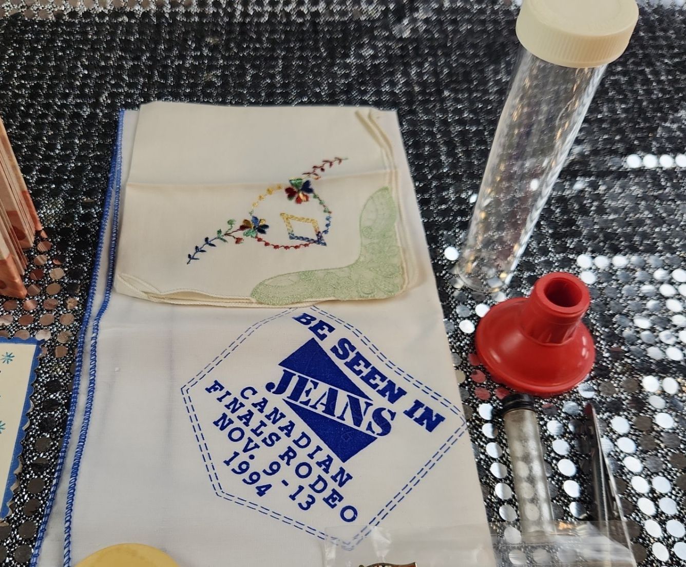 Variety Box !! A collection of memorabilia includes Canadian Musician Ian Tyson, pins, linens, etc
