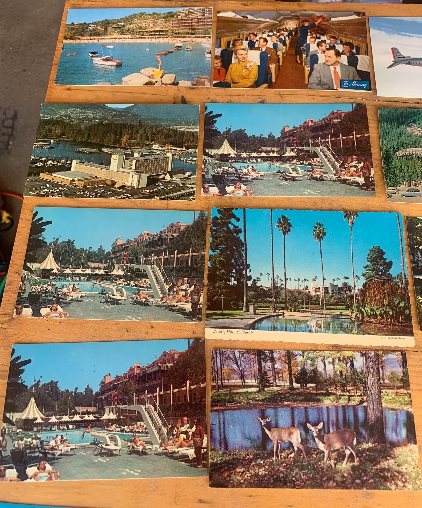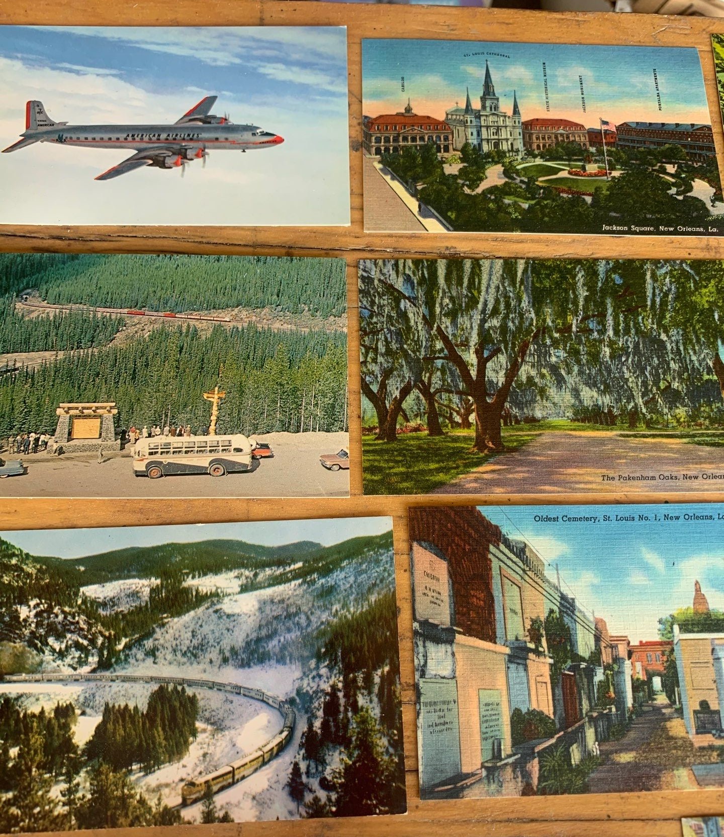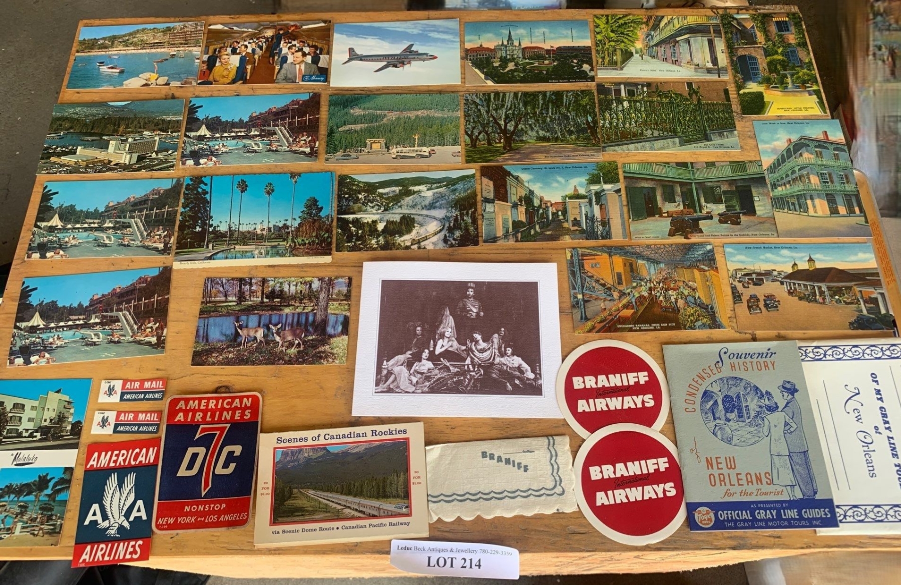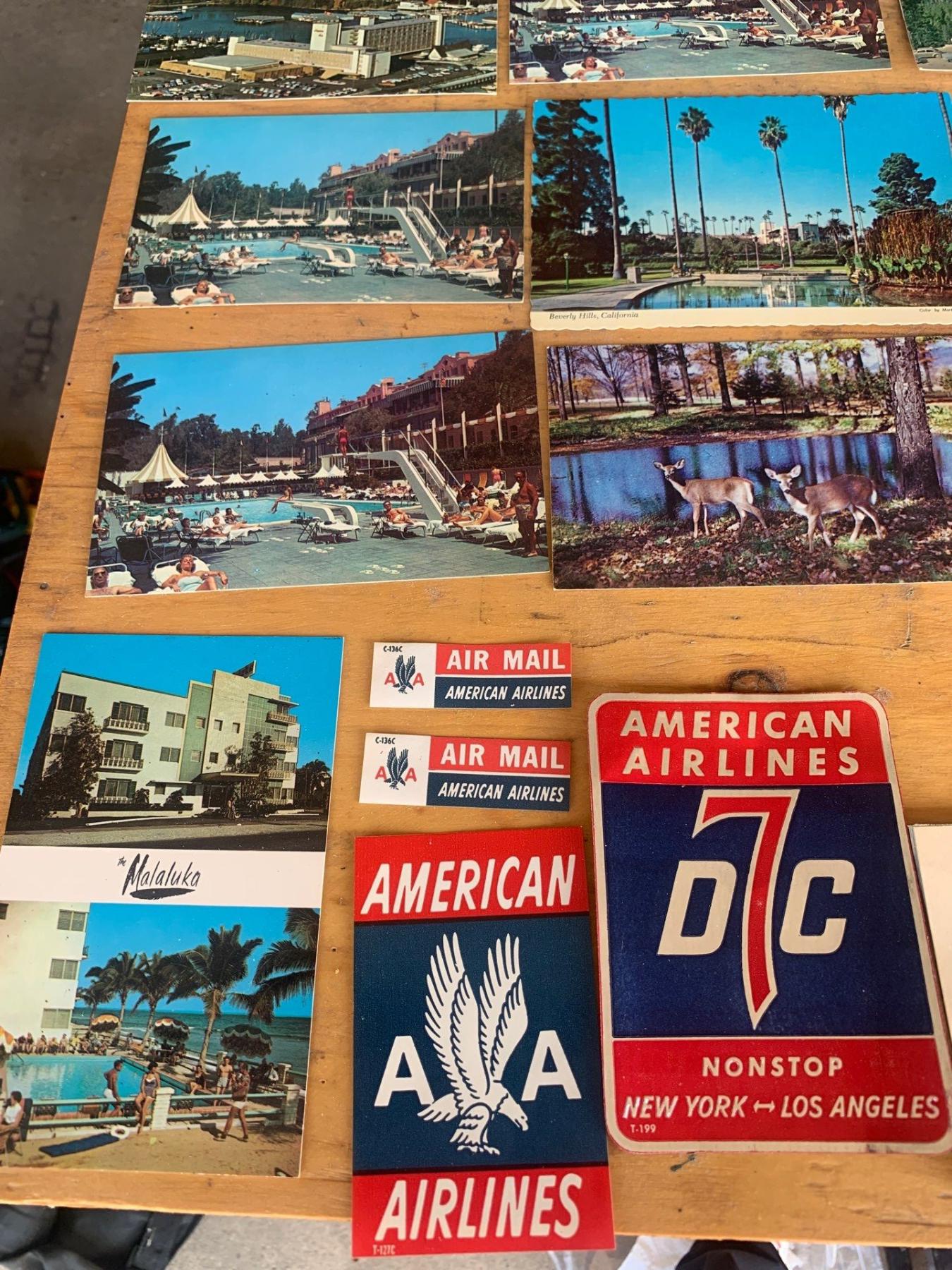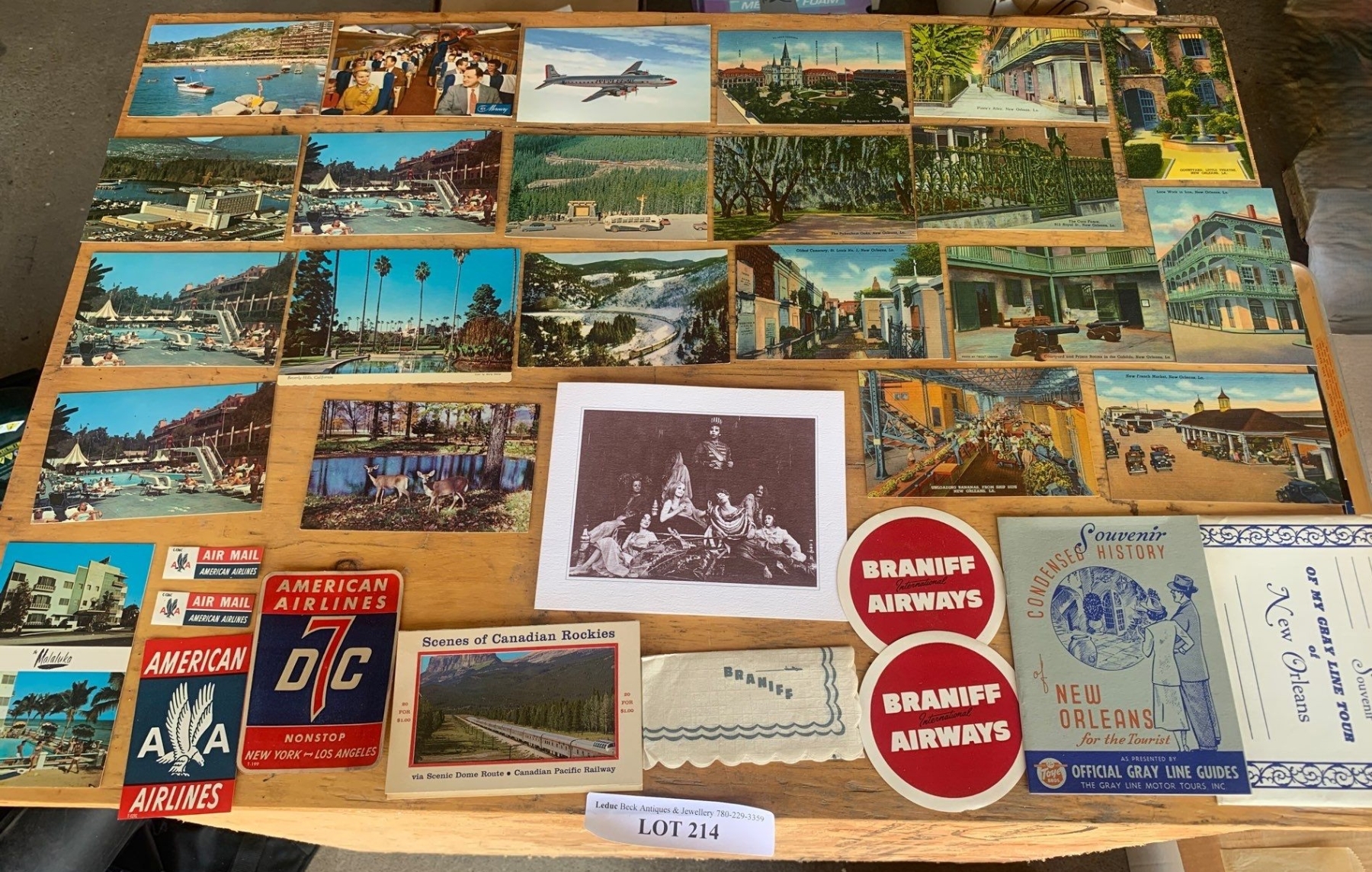 Variety of Vintage Postcards, Scenes of the Rockies, Braniff Airline Stickers and more