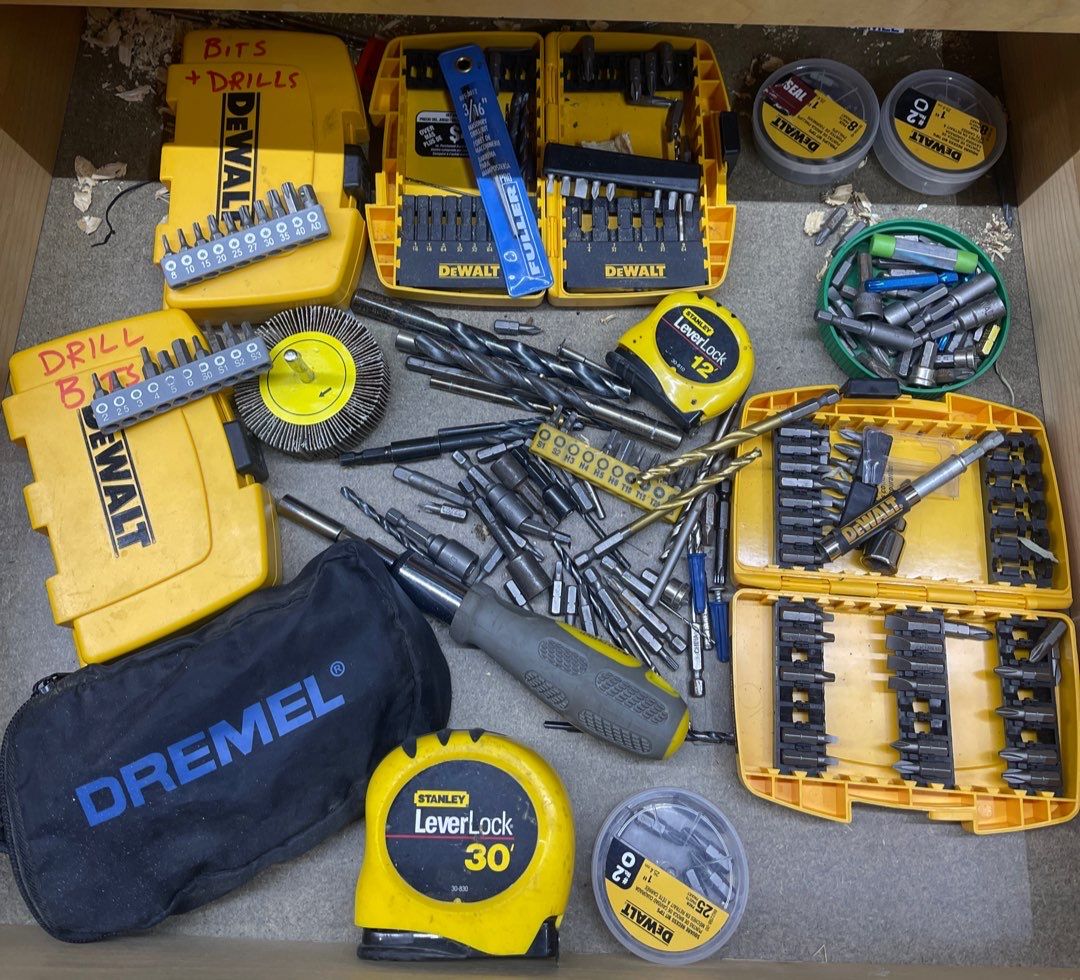 Various Tools & Accessories- DeWalt Branded Items, Tape Measure, Dremel Bag & More