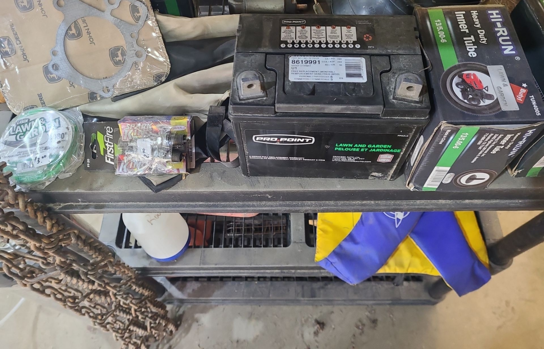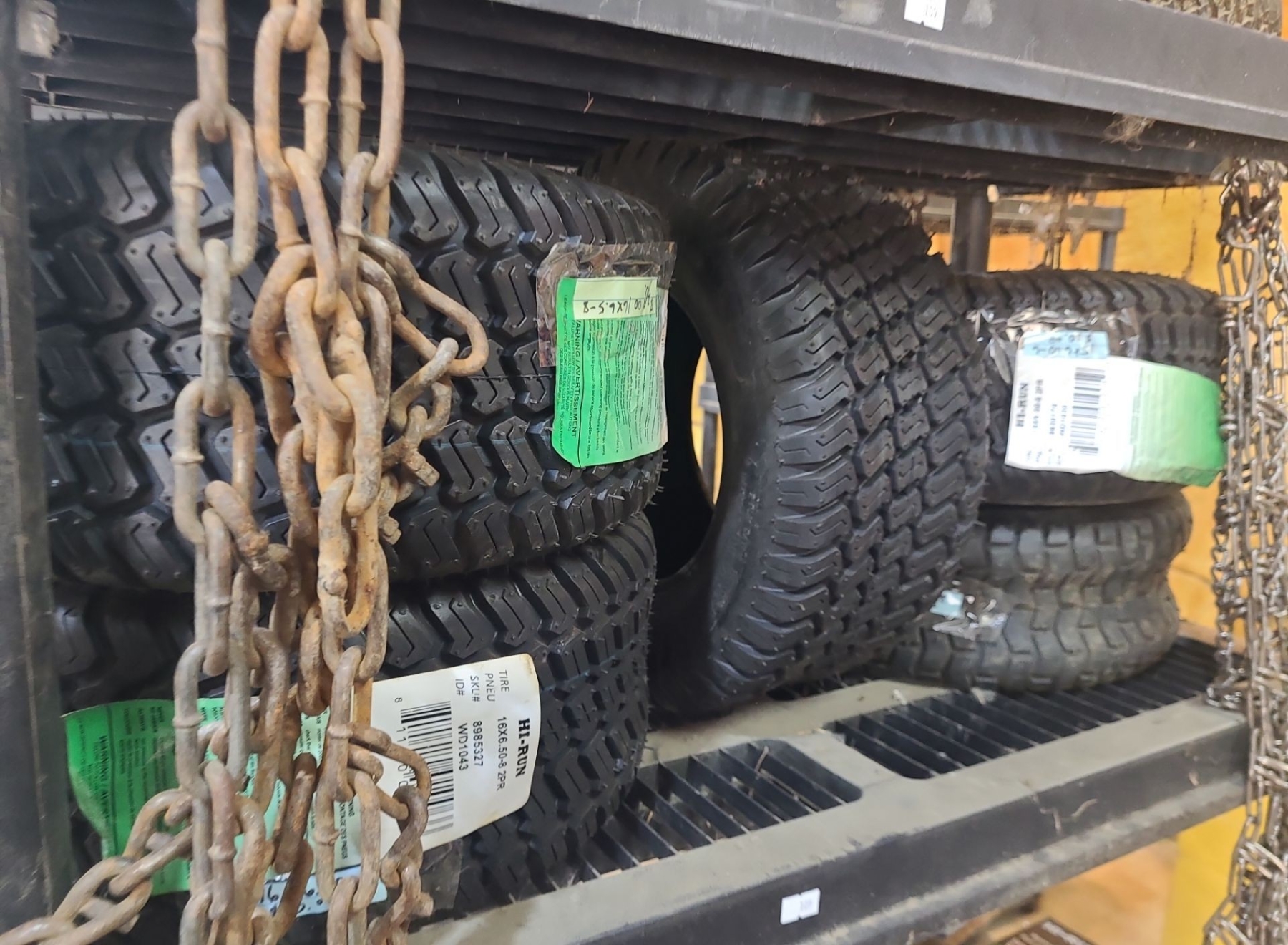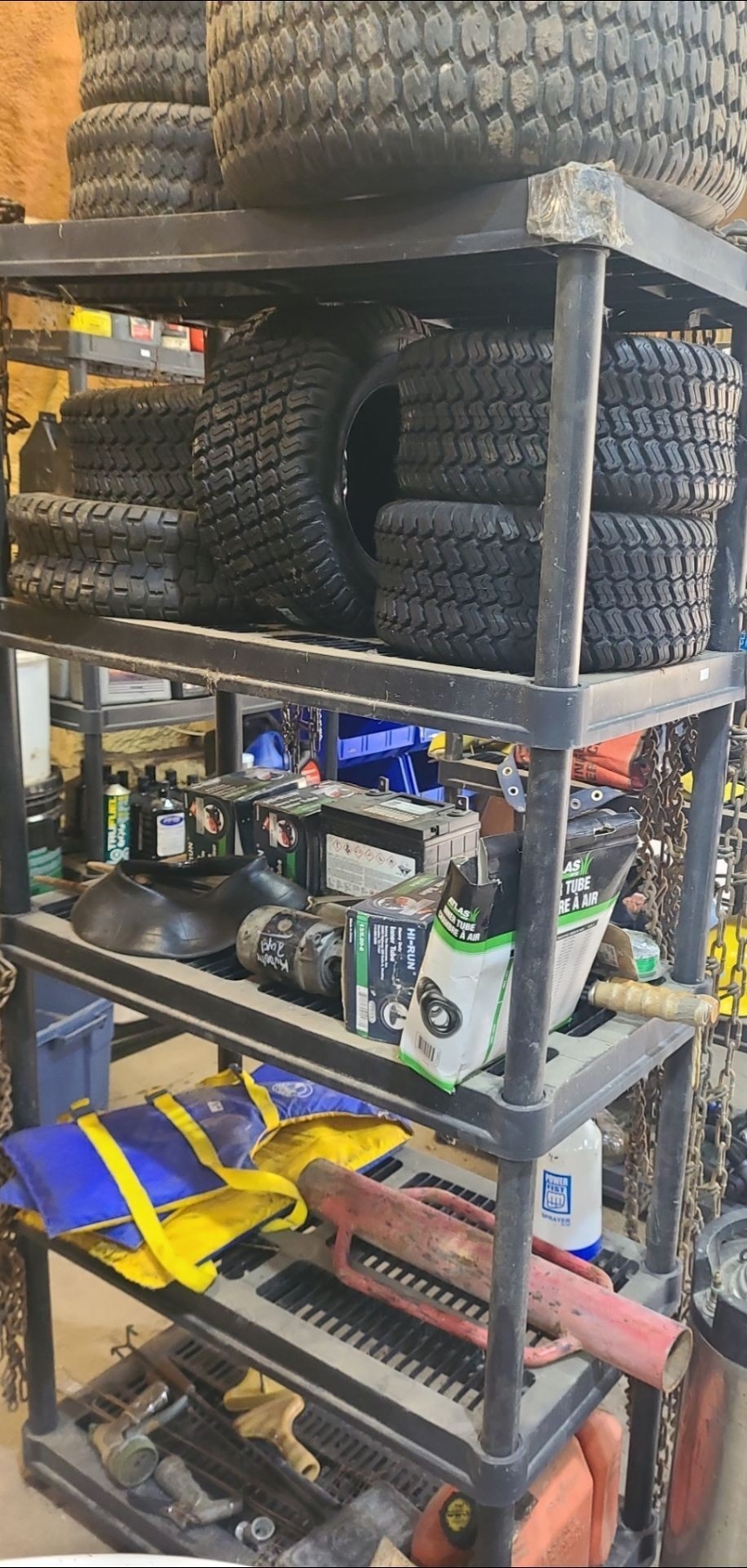 Vehicle Tires, Tubes, Tire Chains, Batteries w/ Shop Shelf
