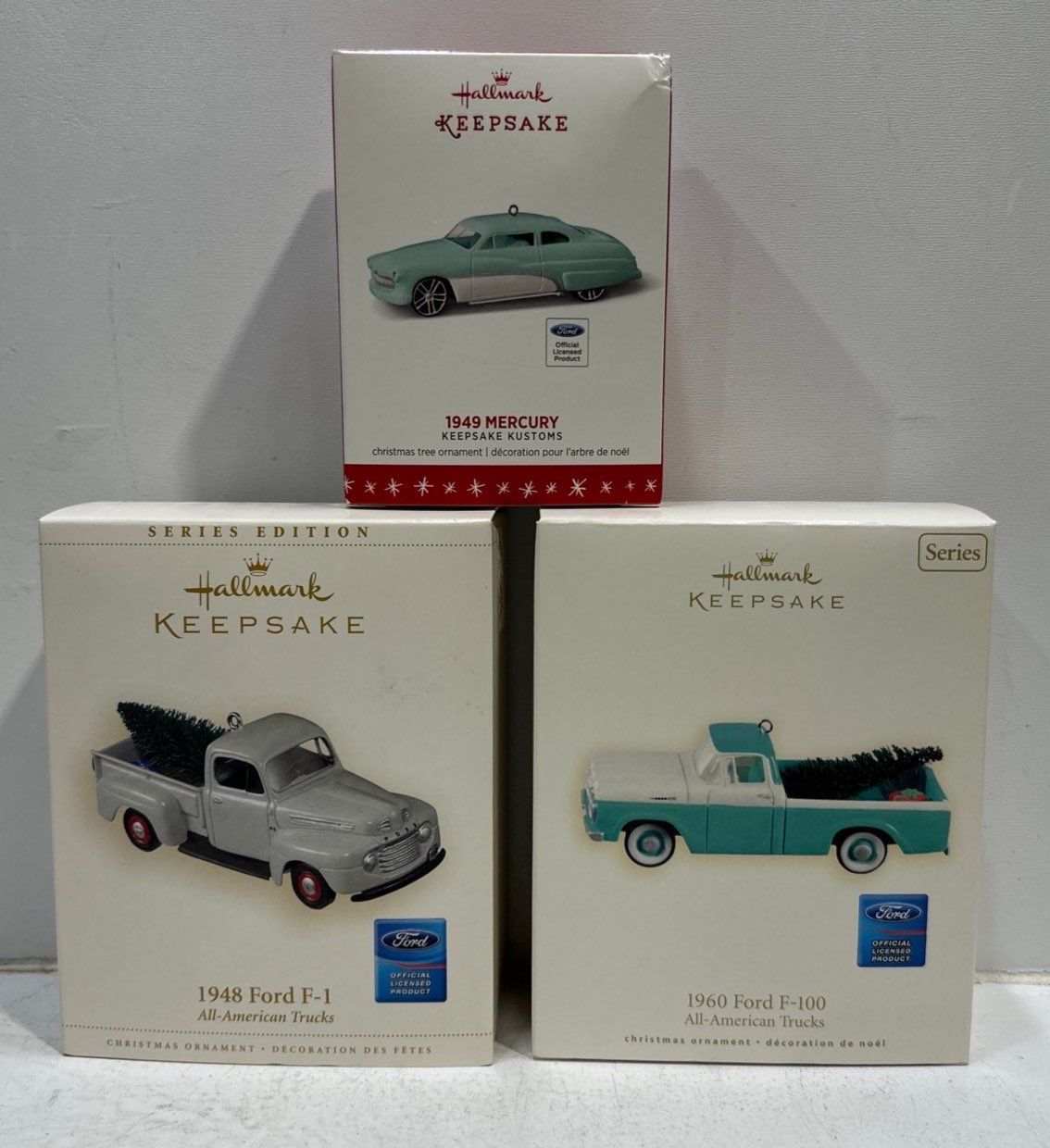 Vehicles- 1949 Mercury, 1948 Ford F-1,  1960 Ford F-100 Hallmark Ornaments