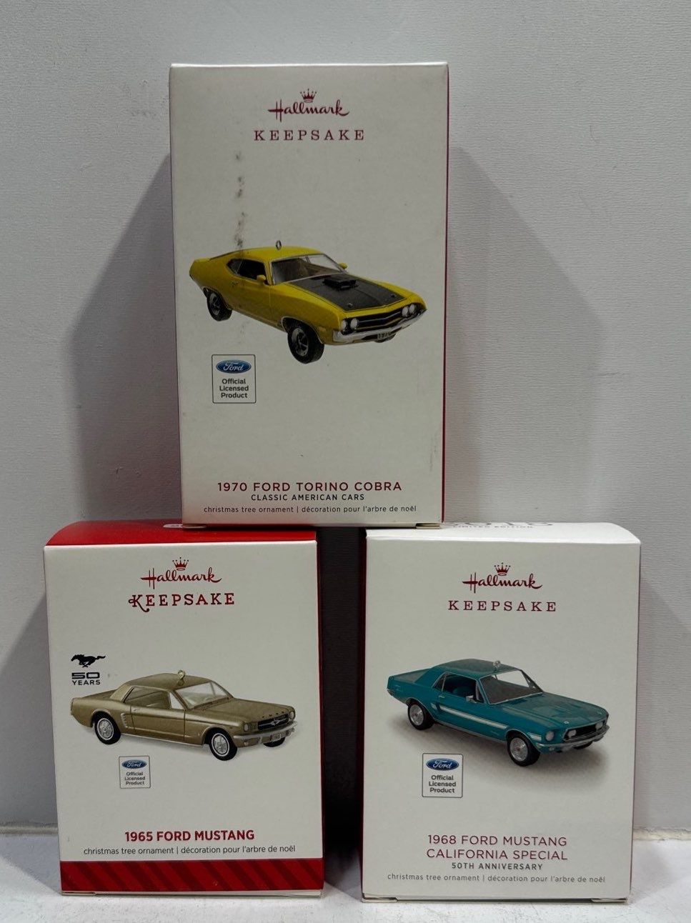 Vehicles-1970 Torino Cobra, 1965 Mustang, 1968 Mustang California Special Hallmark Ornaments