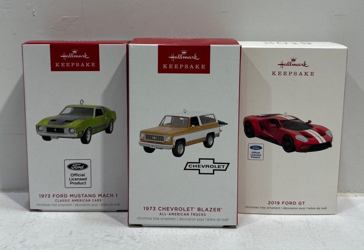 Vehicles-1973 Mustang Mach 1, 1973 Blazer, 2019 Ford GT Hallmark Ornaments