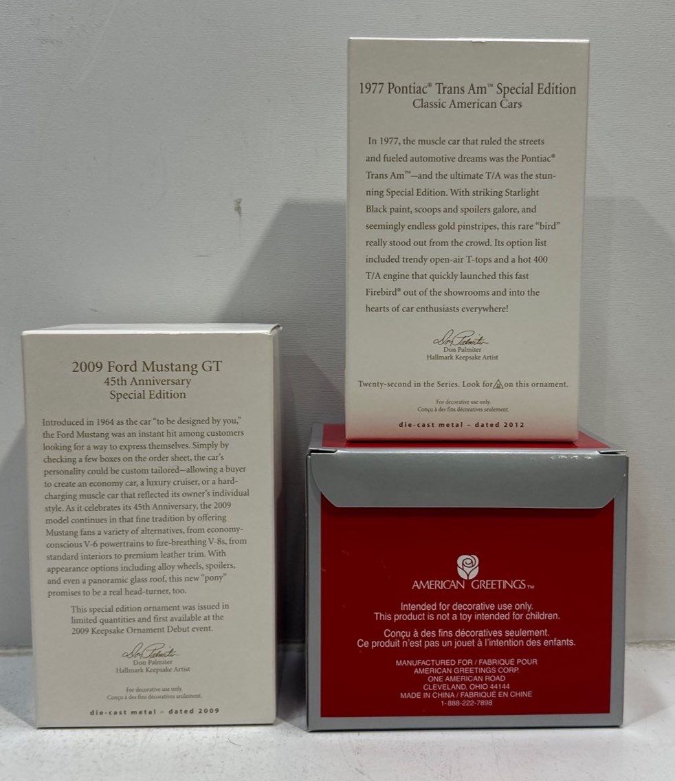 Vehicles- 1977 Trans Am, 2009 Mustang GT, 1967 Shelby GT350 Hallmark Ornaments