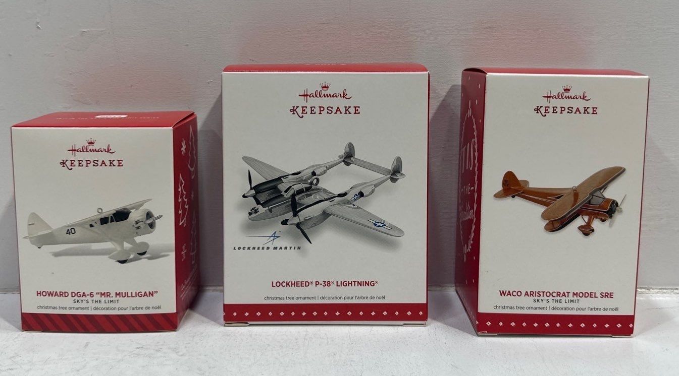 Vehicles- Howard DGA-6, Lockheed P-38, Waco Aristocrat Model SRE Hallmark Ornaments