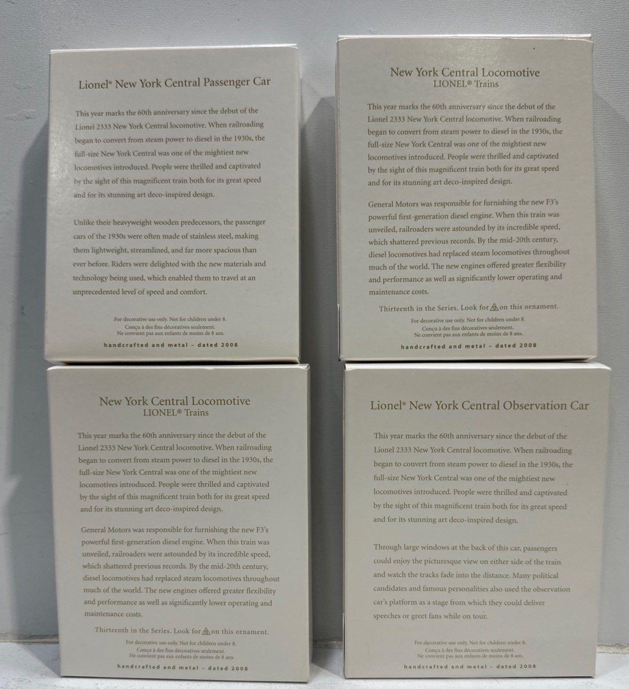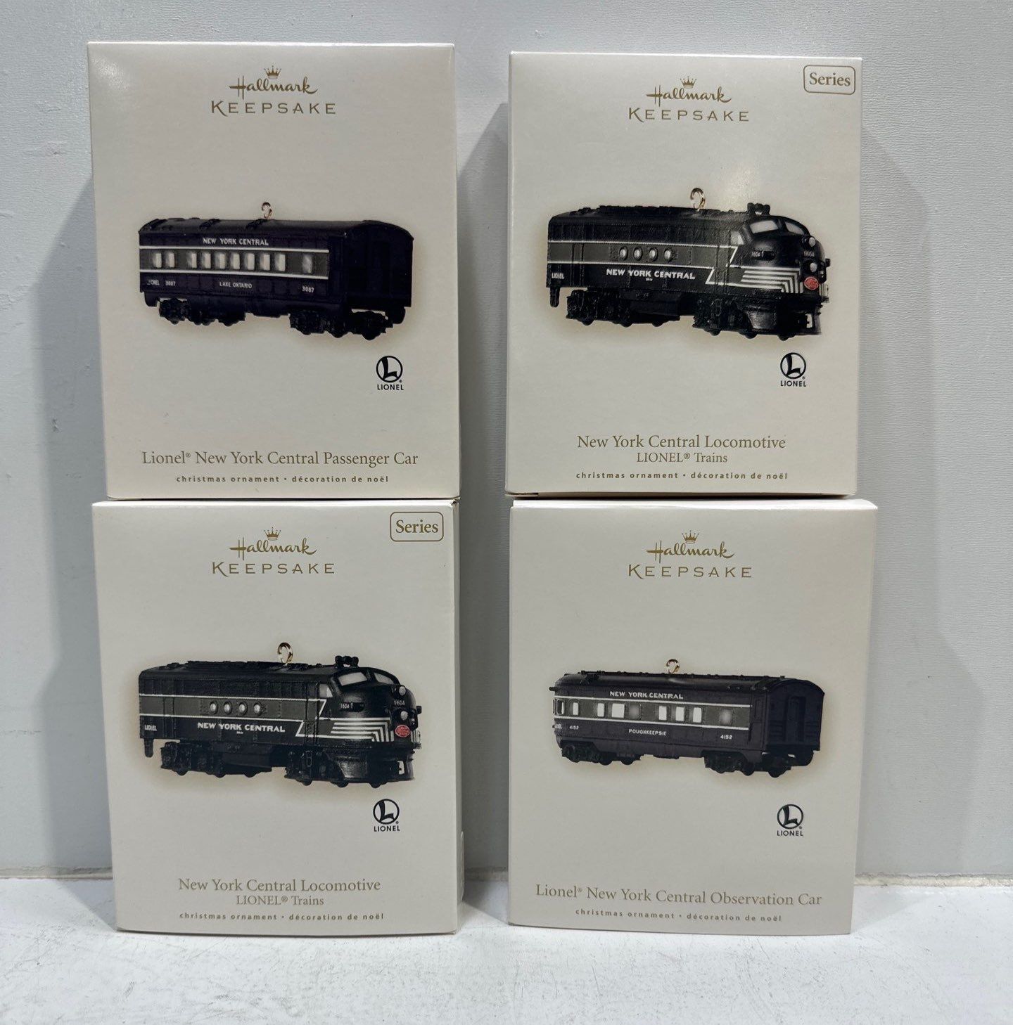 Vehicles-NY Central Locomotive (2), Passenger Car, Observation Car Hallmark Ornaments
