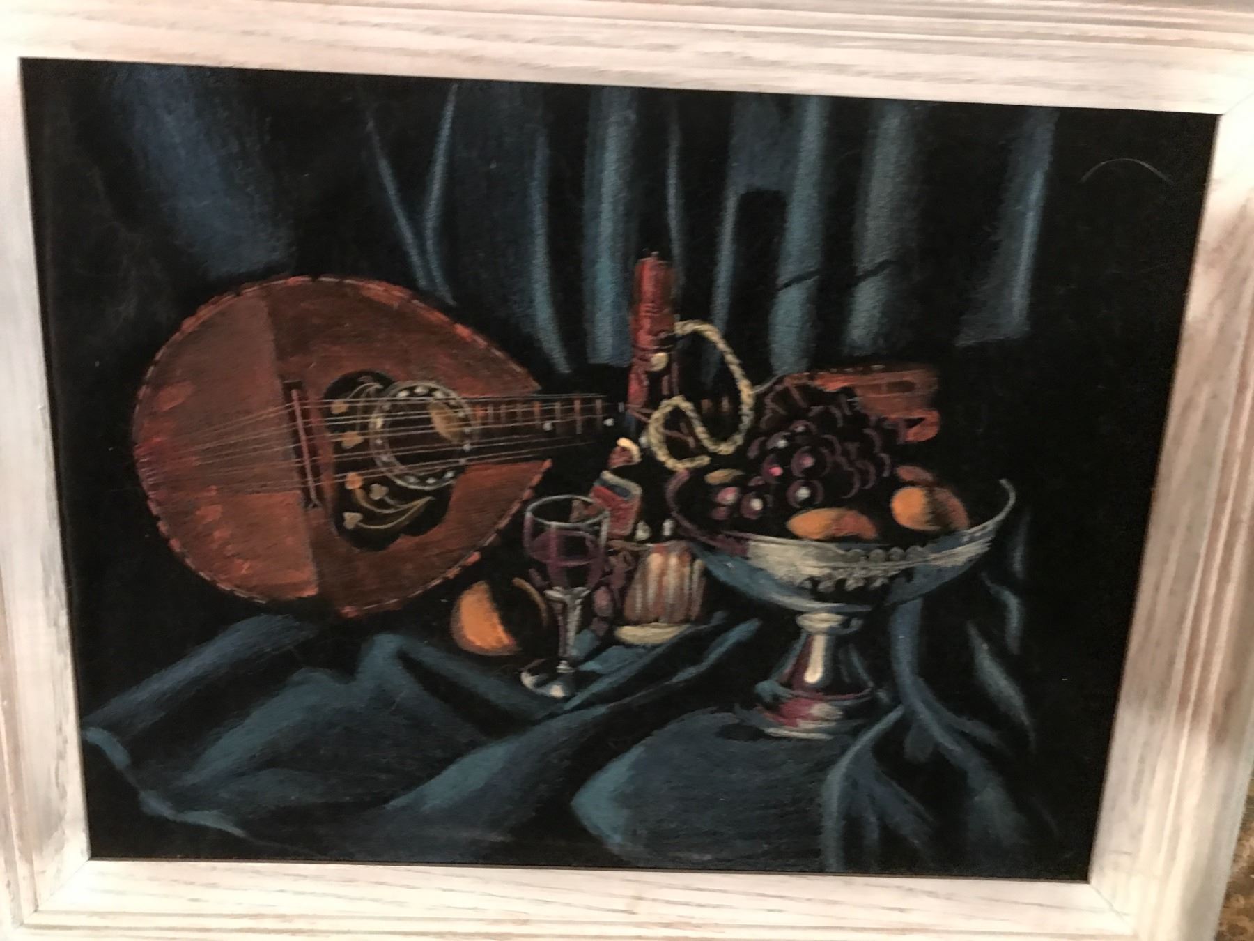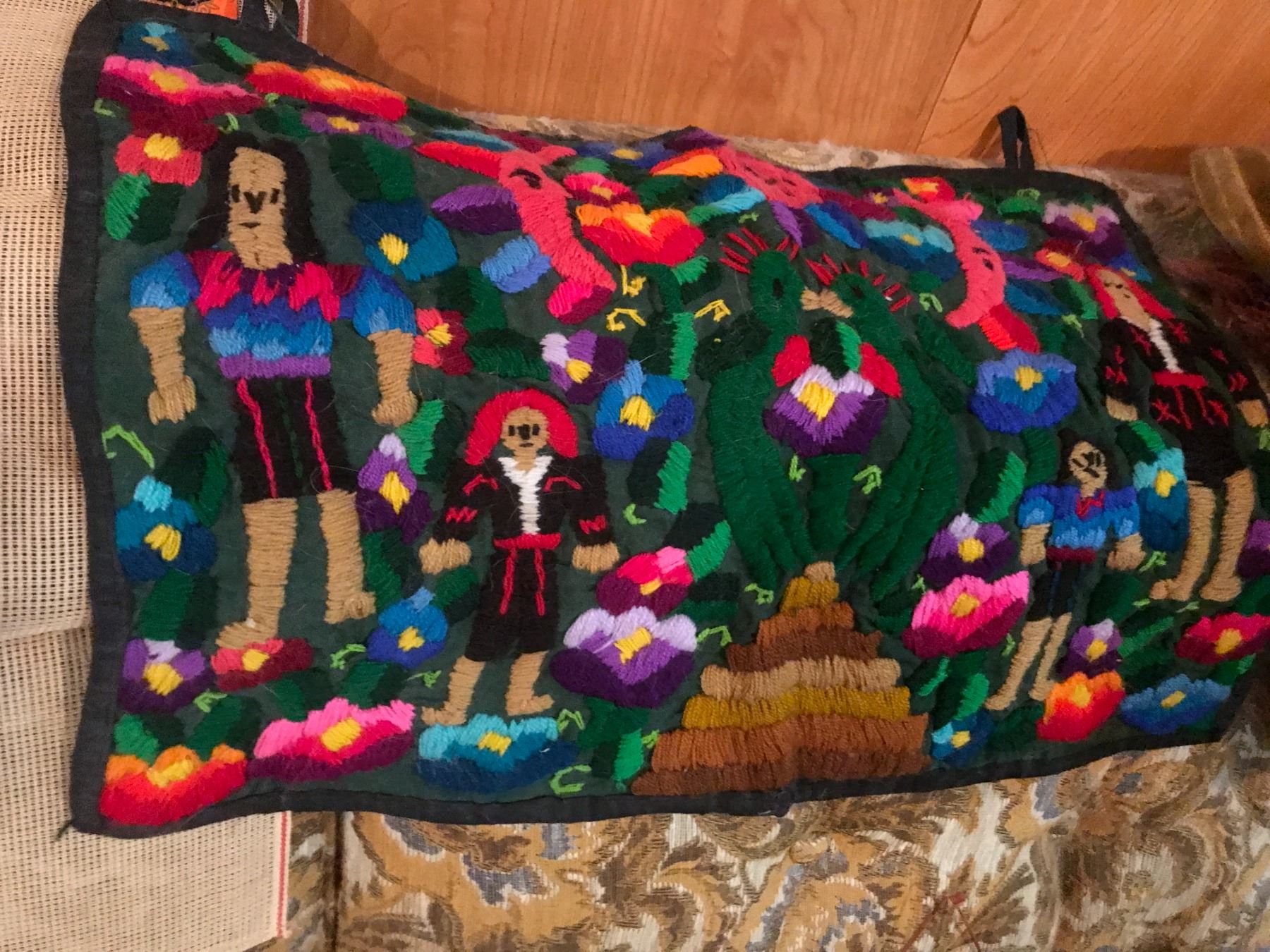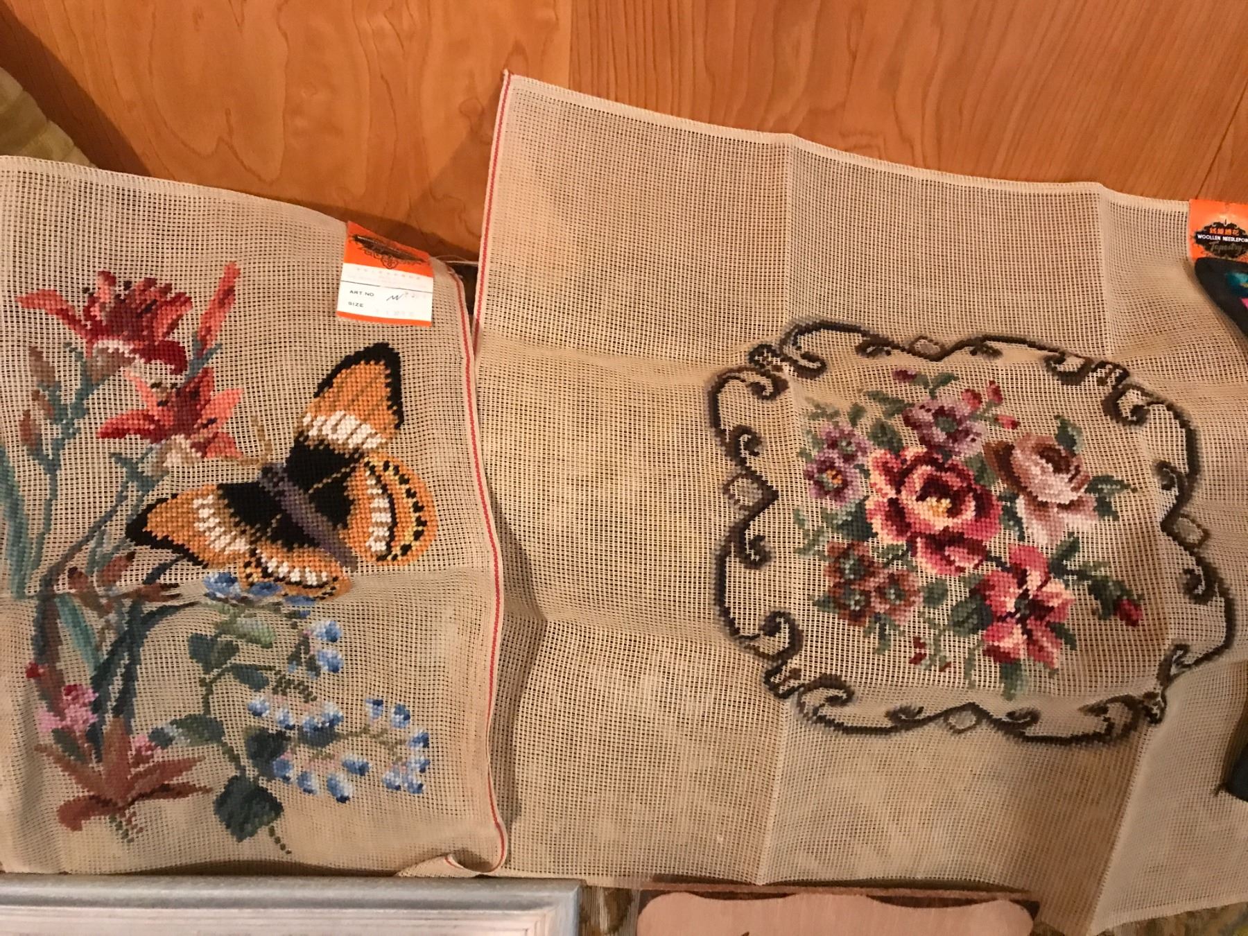 Velvet Wall Art, Needlepoint Tapestry, Wood Art & Large Brass School Bell