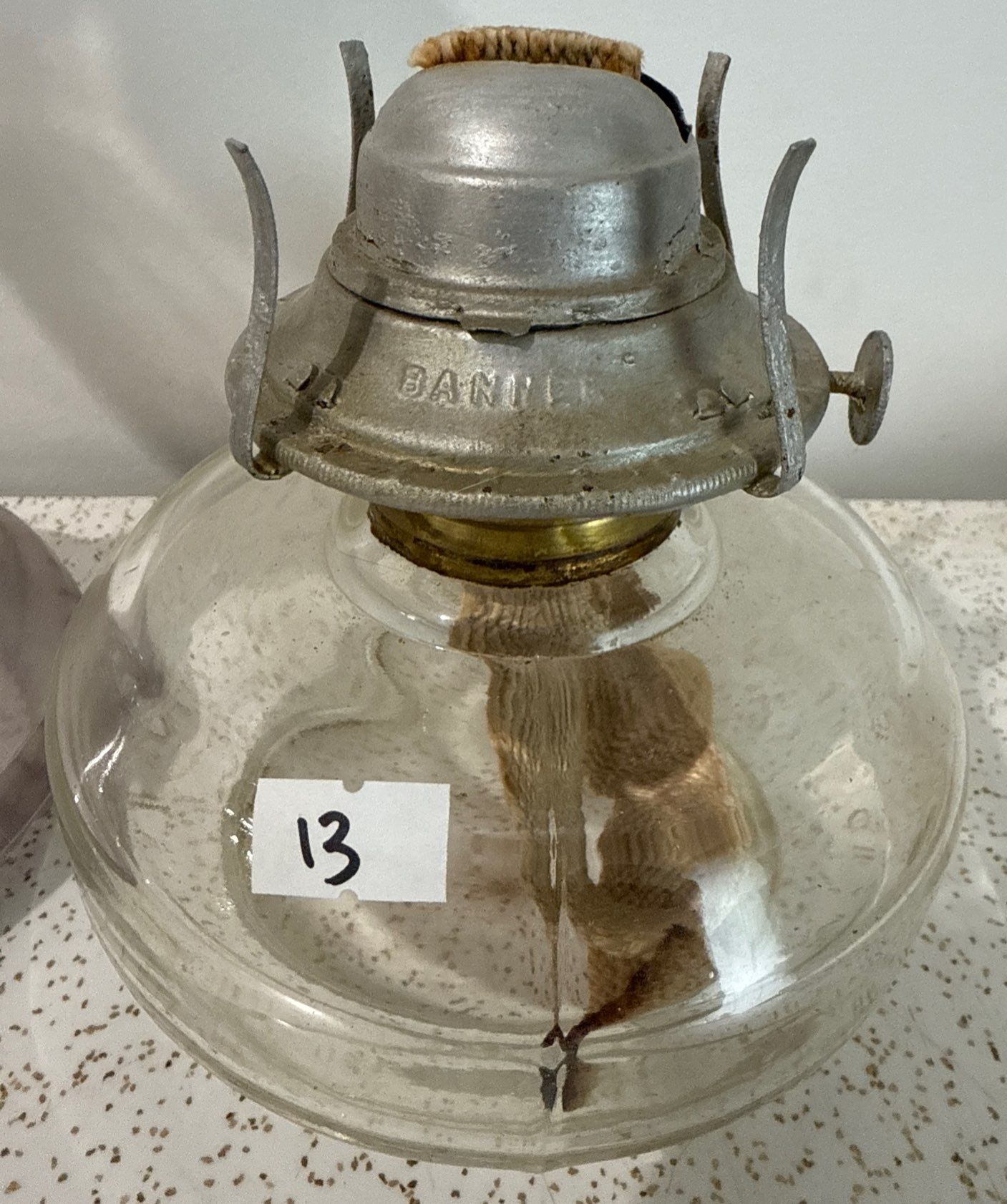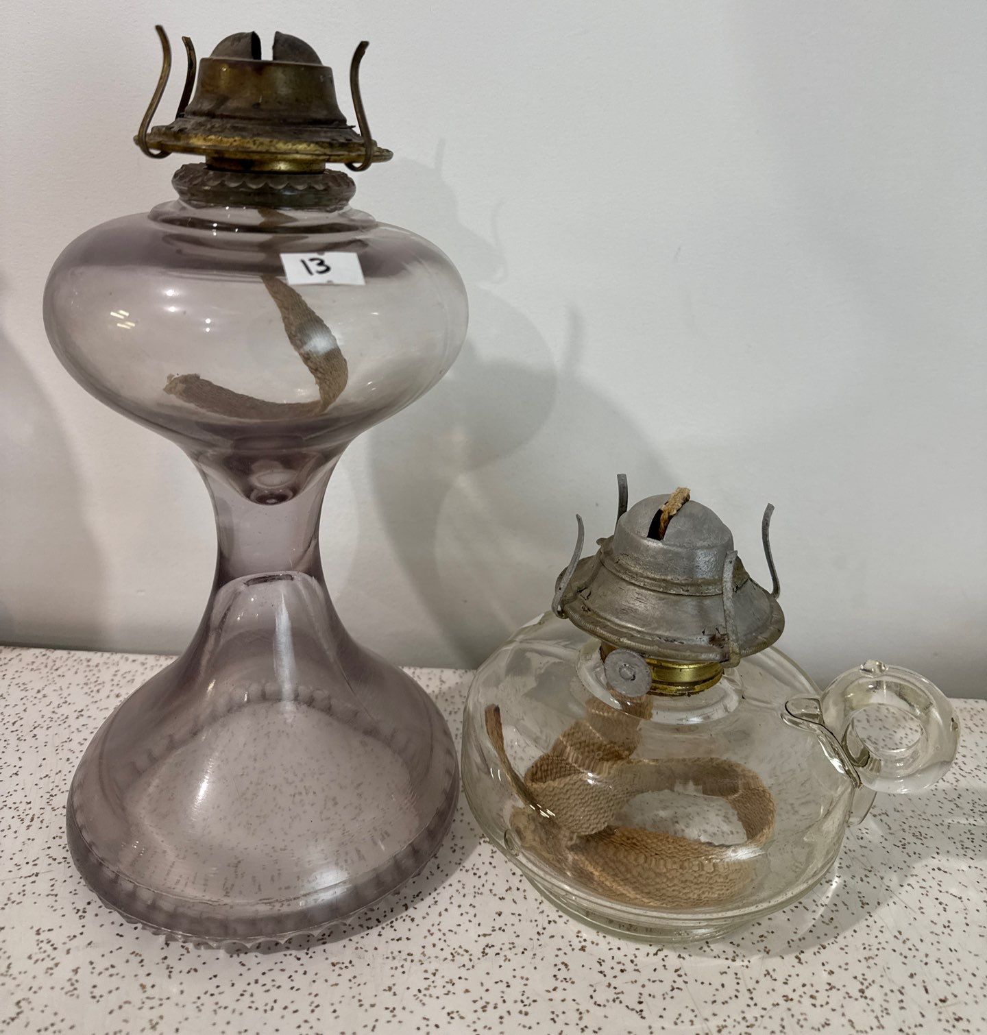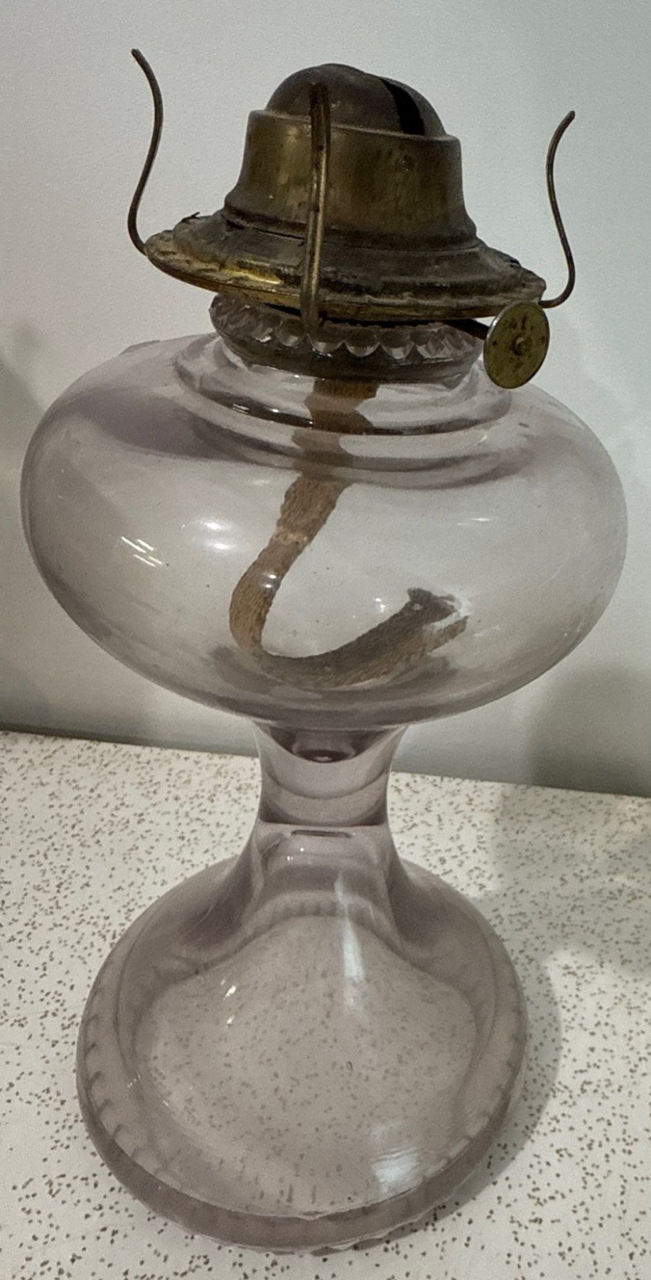 Victorian Banner Oil Lamp & Amethyst Glass Eagle Oil Lamp