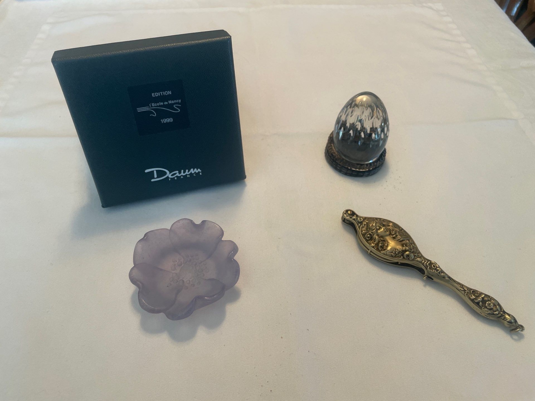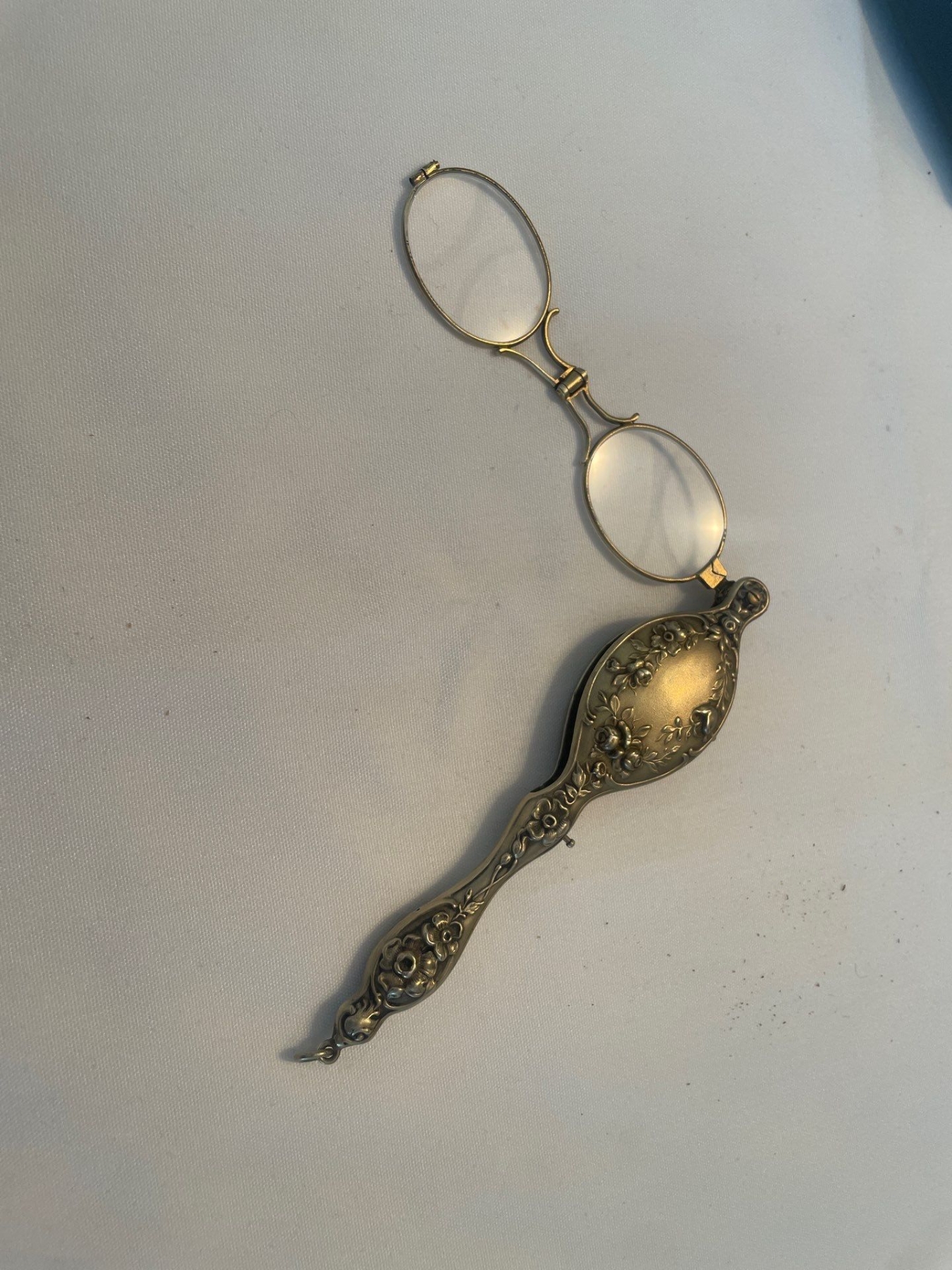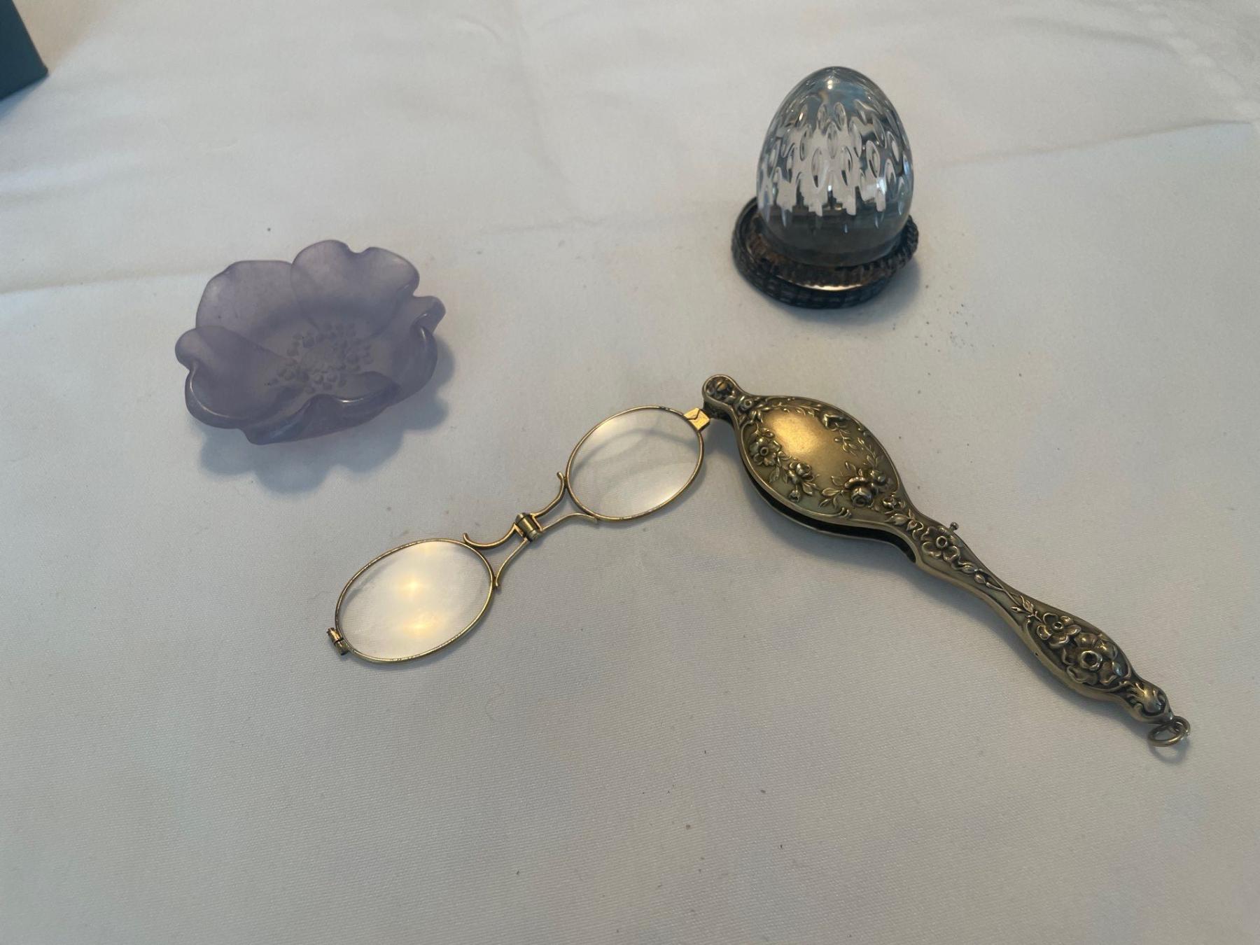 Victorian Folding Lorgnette Glasses w/ Speckled Art Glass Egg & More 5W