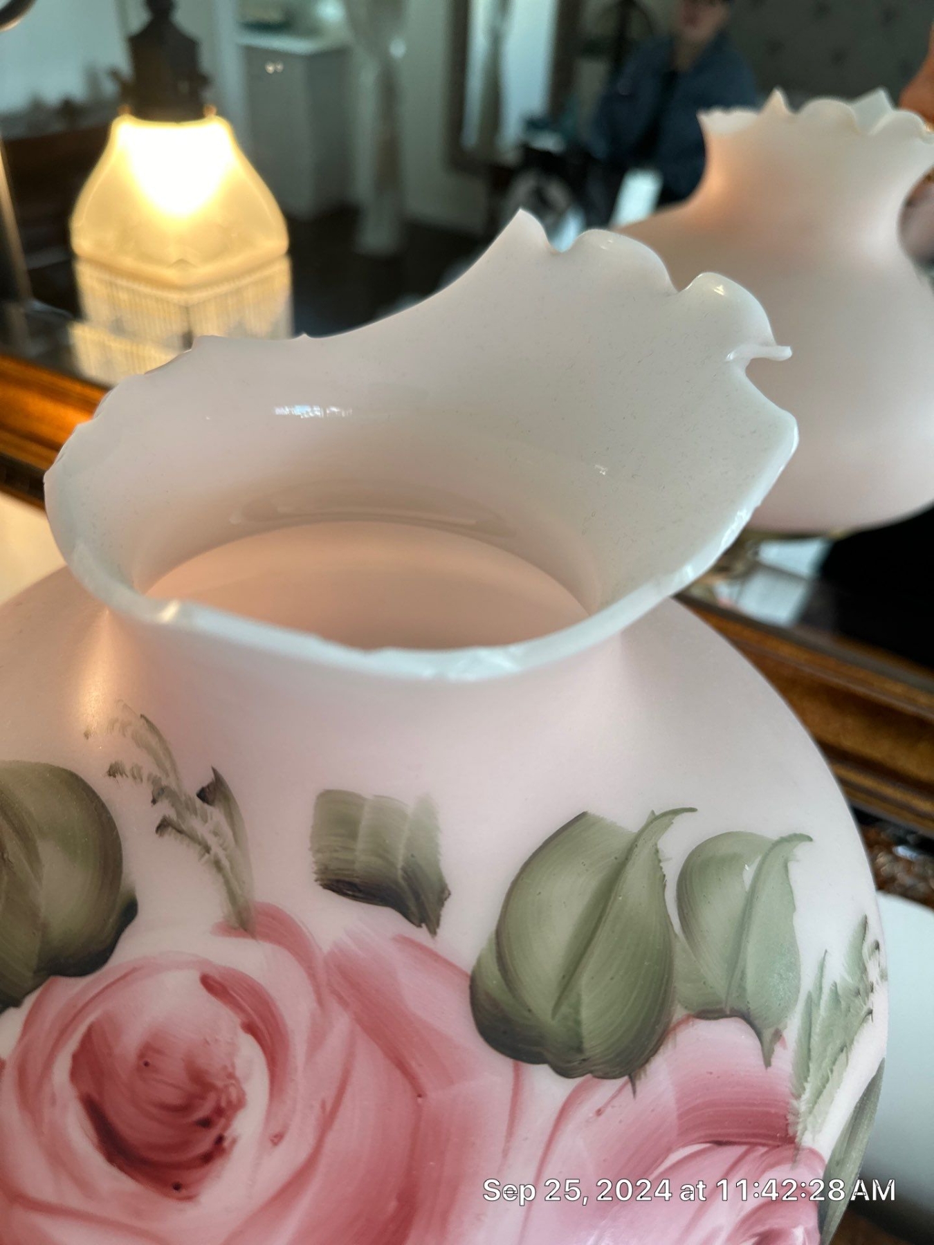 Victorian Style Hand Painted Lamp with Damage to Shade, Bottom & Top Light Up - 20T