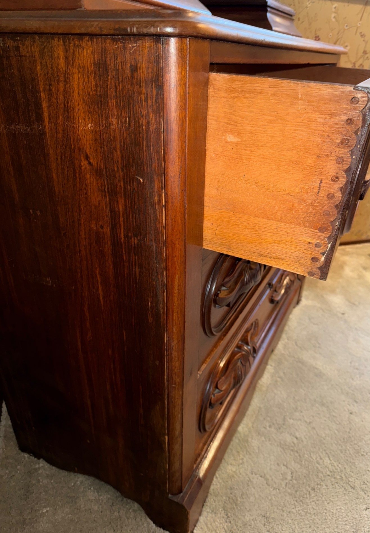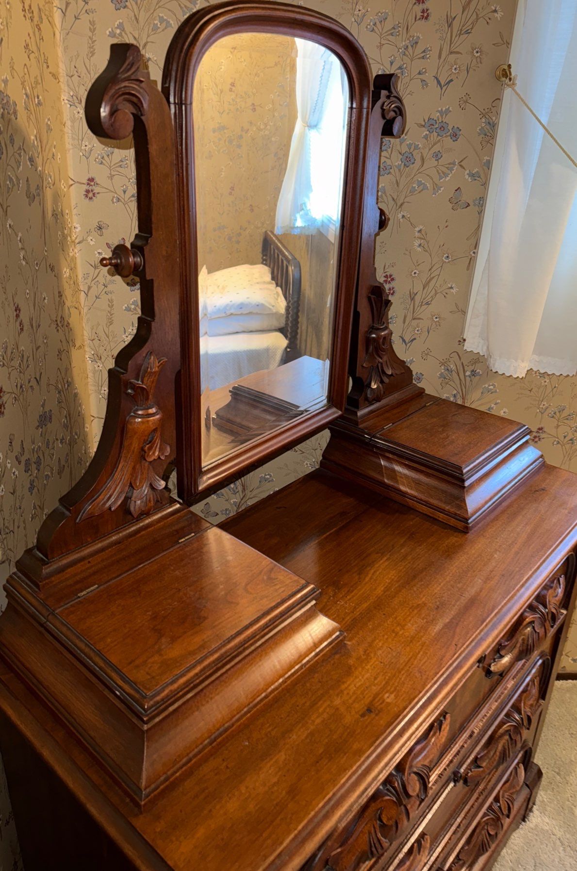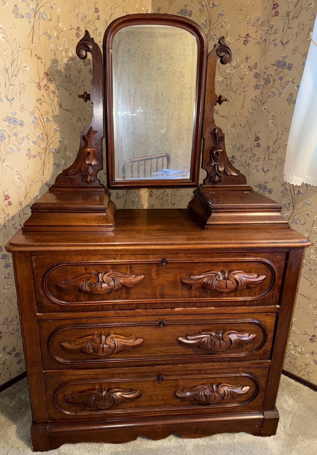 Victorian Walnut Vanity Dresser Cabinet Antique W/Mirror