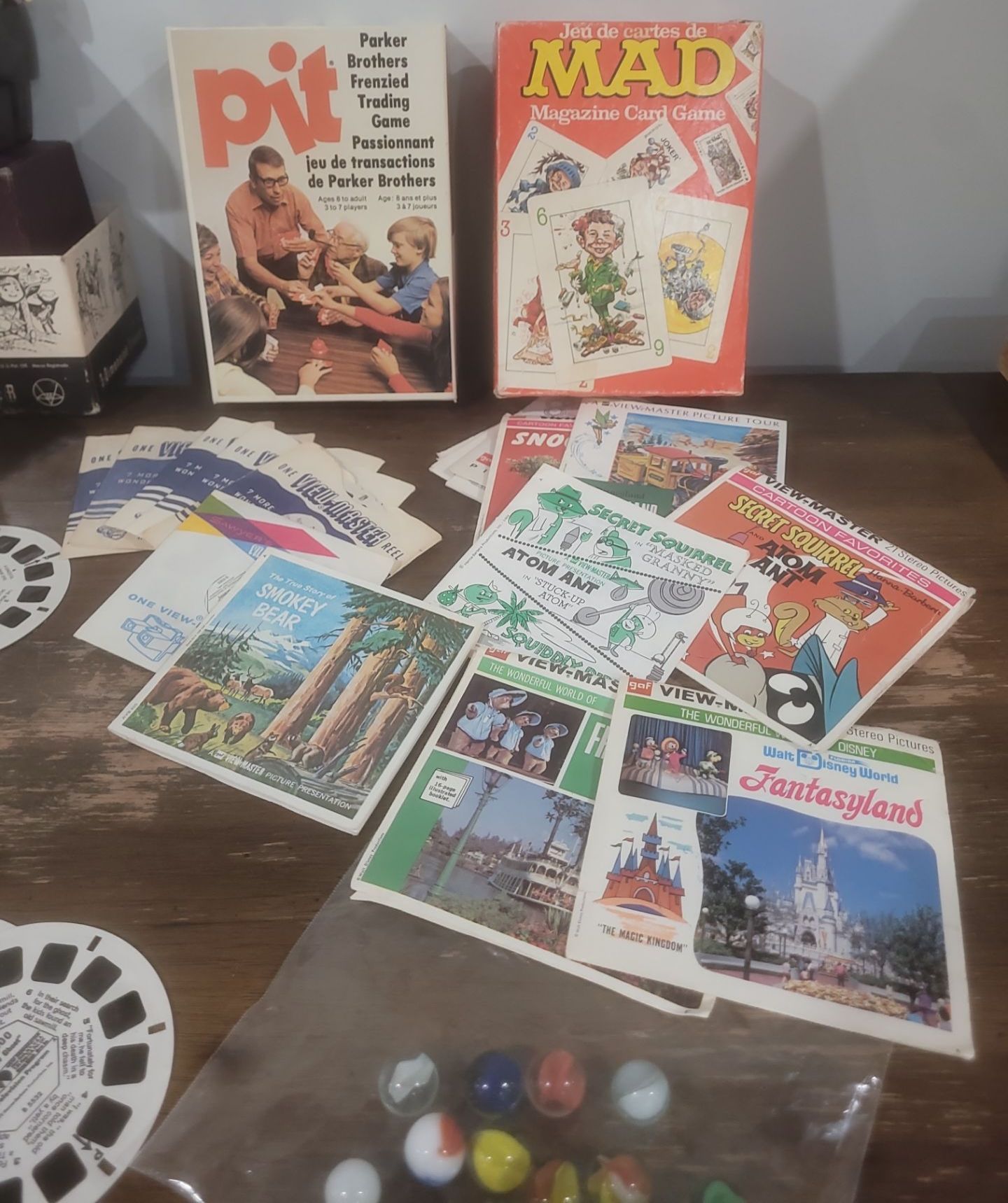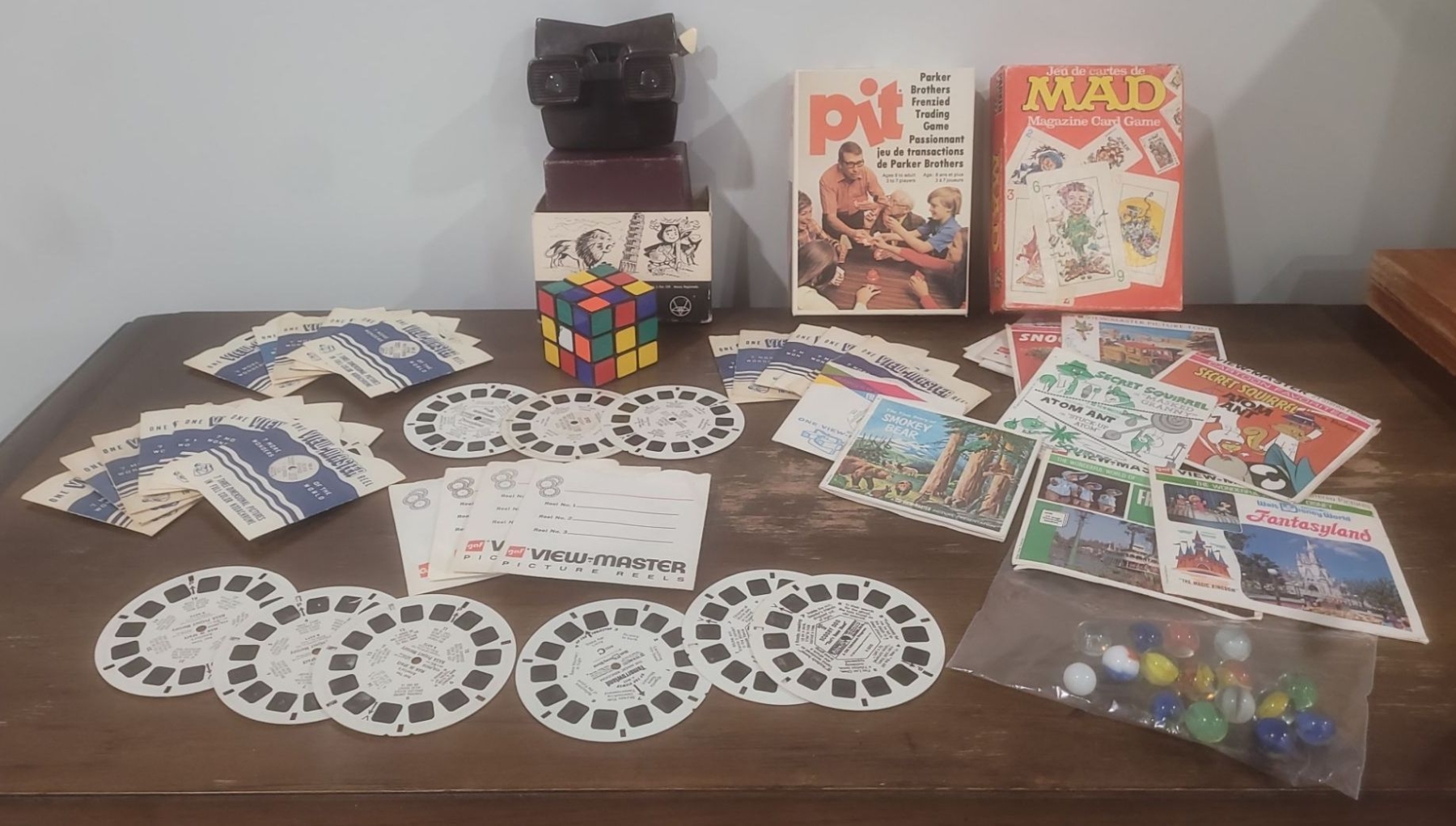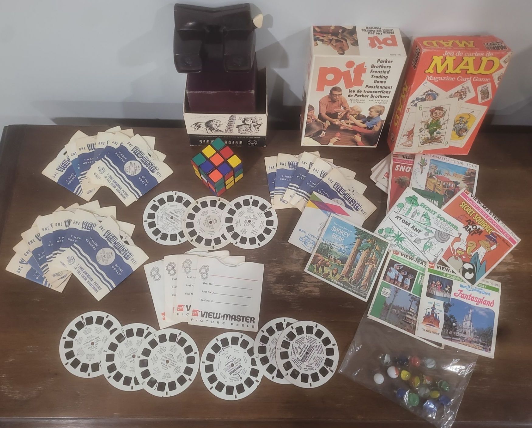 View Finder w/ Slides, Marbles, Rubix Cube, MAD Game & Parker Bros "Pit" Game