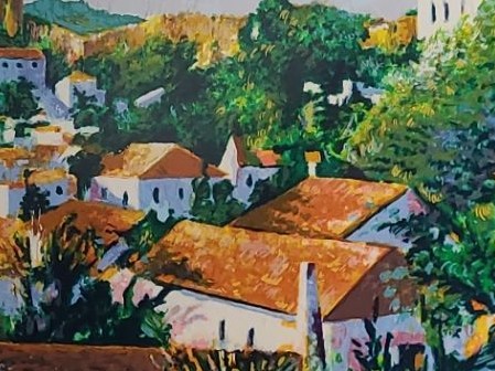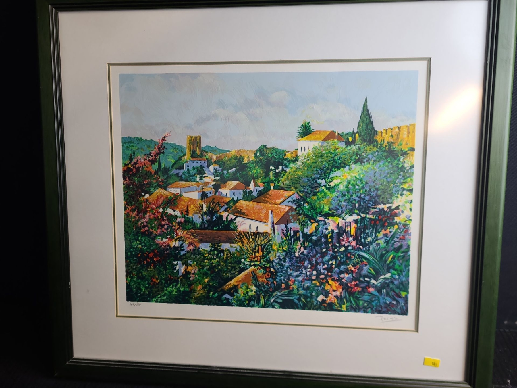 Villas In Countryside, Numbered Print, 262/350, Signed: Perez, Framed Under Glass, 26.5 X 24