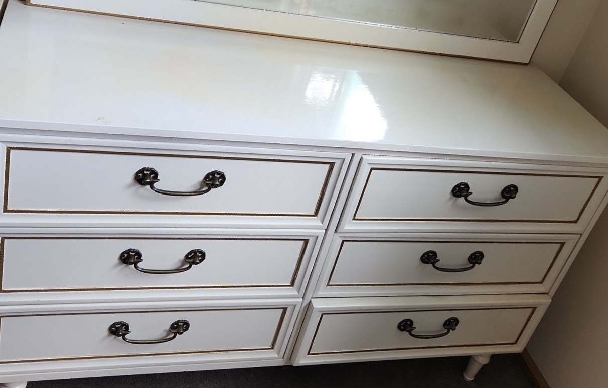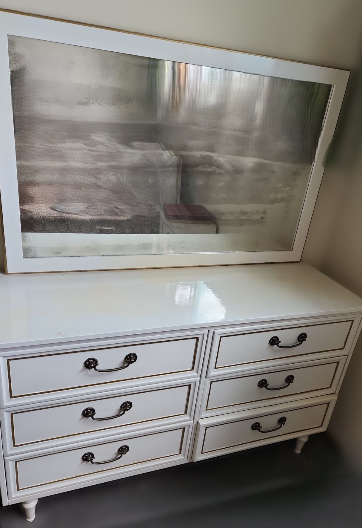 Mirror has Blackened Spotting, Some Scuffs and Scratches, Painted/ Discoloration, Bring Tools to Disassemble Mirror and Bring Assistance
