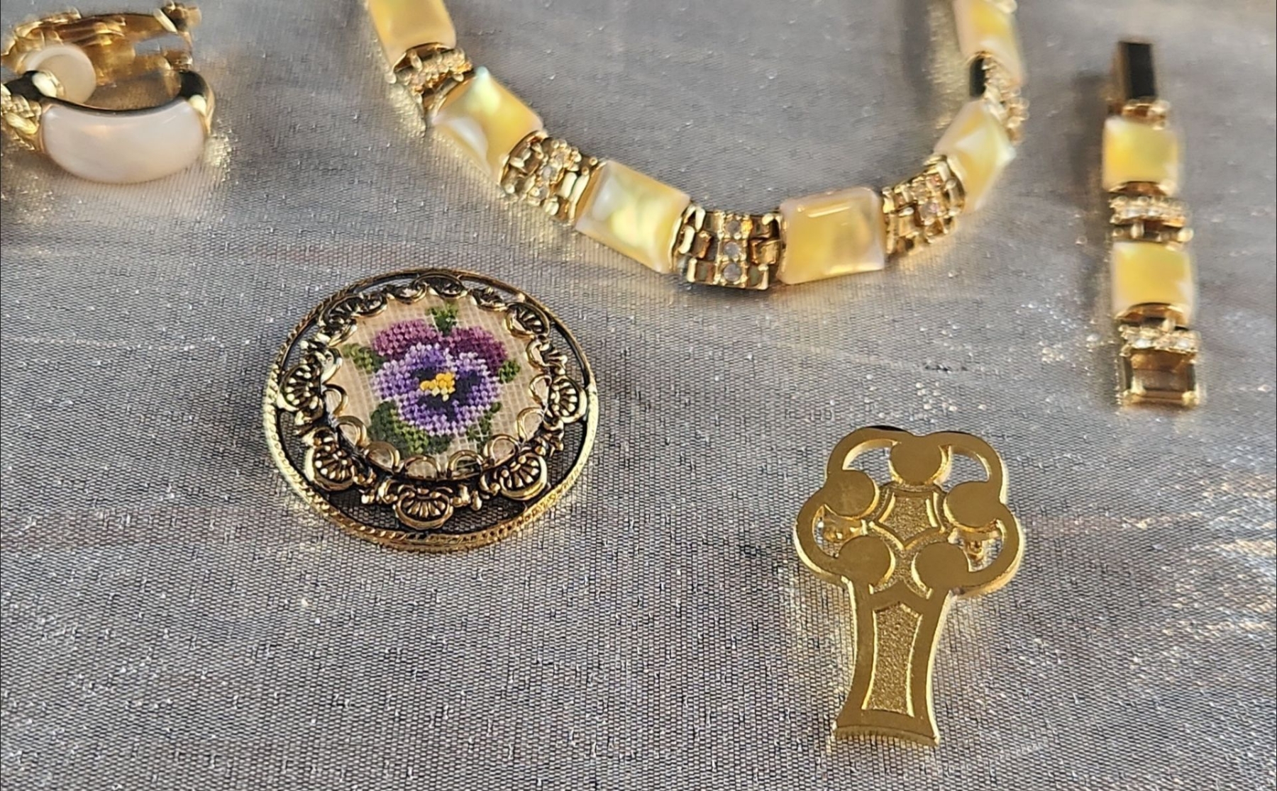 This Collection Features a Variety of Vintage and Costume Jewelry Pieces, Including 1980s BUTLER Gold-Toned Necklaces, Bracelets, Earrings, and a Decorative Floral Brooch. Some Are Stamped *Non-Verified Precious Metal*