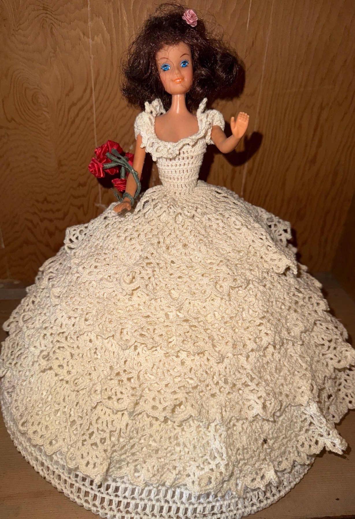 Vintage Barbie w/ Handmade Crochet Gown 14T Bride White Lace