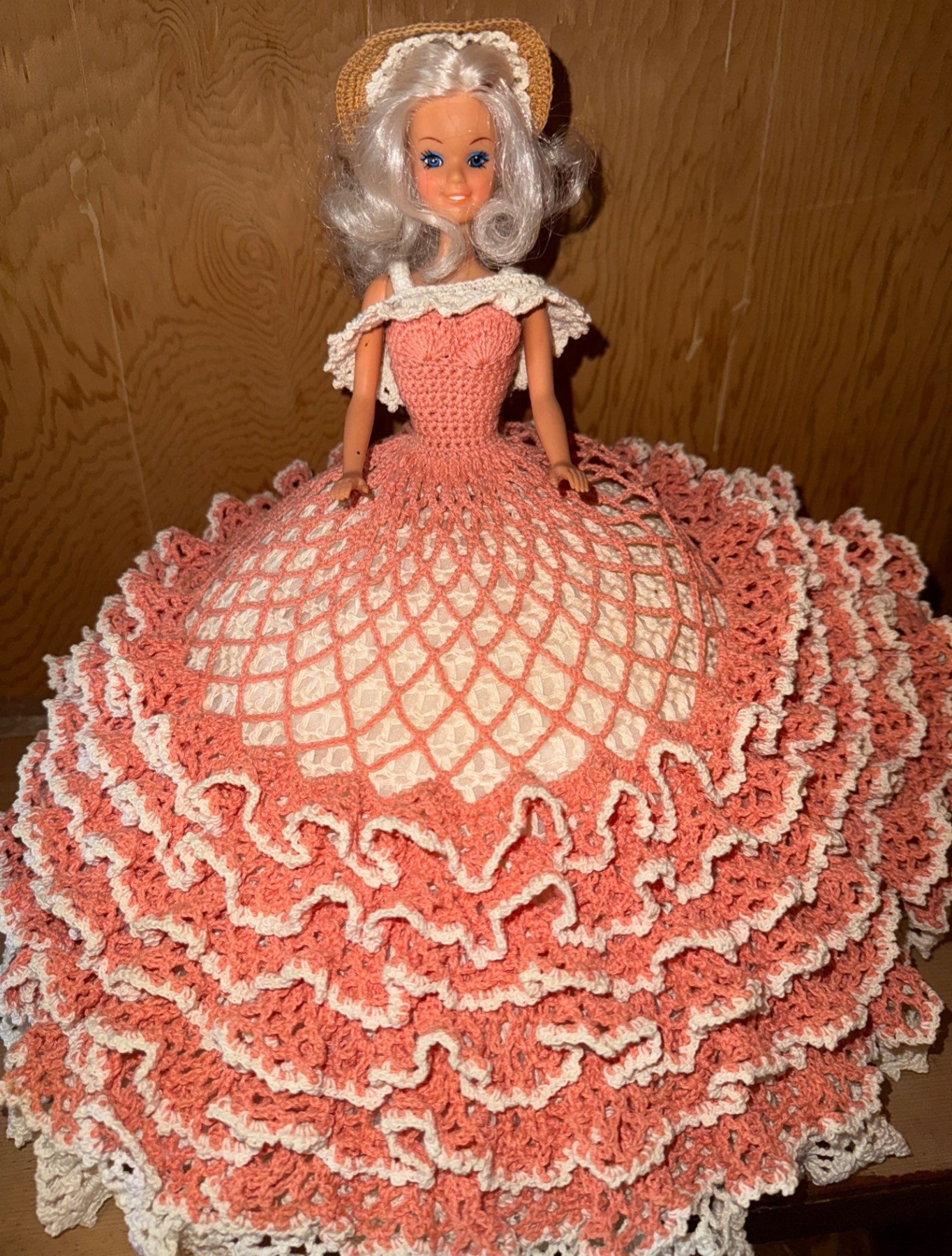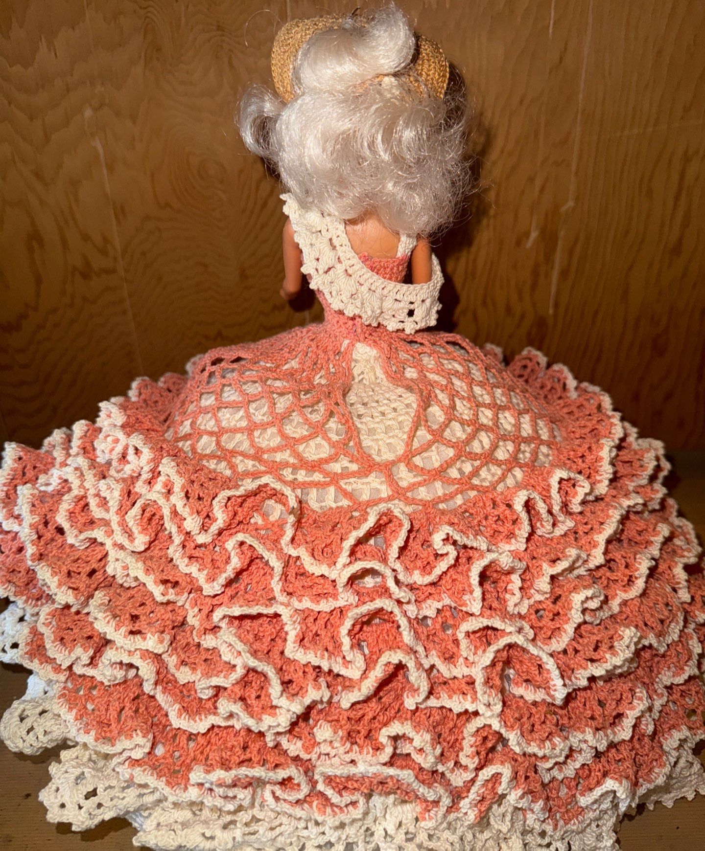 Vintage Barbie w/ Handmade Crochet Gown 14T Coral/White