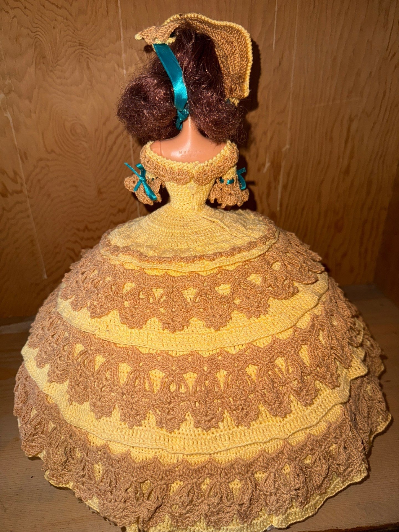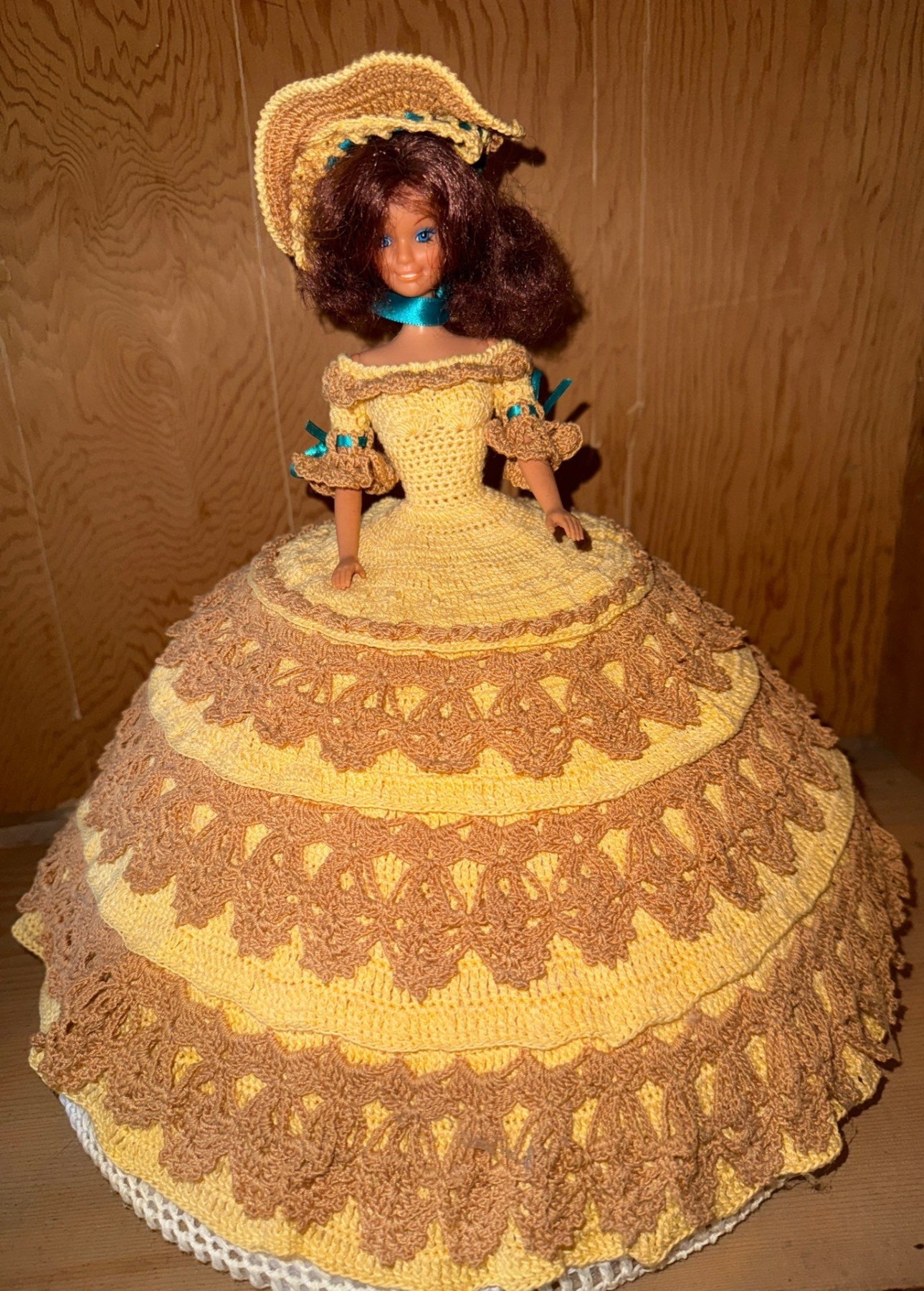 Vintage Barbie w/ Handmade Crochet Gown 14T Yellow/Brown