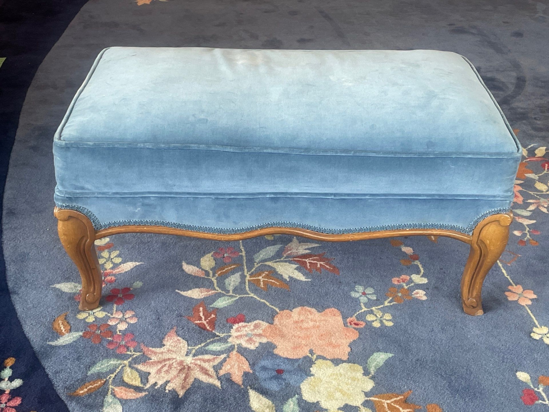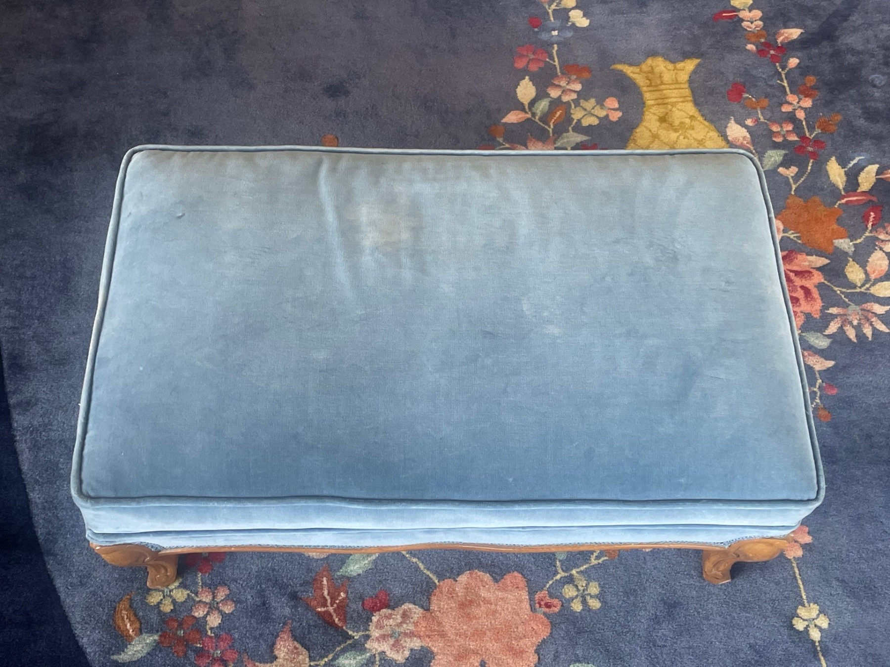 Vintage Blue Velvet Ottoman French Provincial 30x15